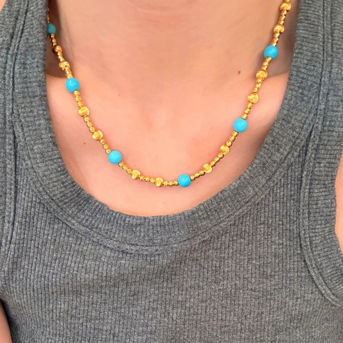 镀真金强保色古法沙金猫眼串珠锁骨链项链时尚复古高级百搭项链