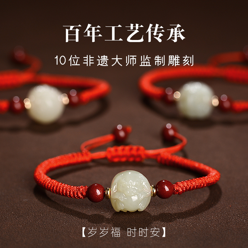 和田玉幸运手链女款编织手绳男十二生肖鼠好运红绳情侣礼物转运珠