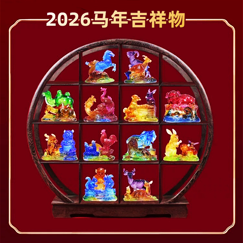 2026马年宋韶光吉祥物摆件十二生肖鼠兔牛琉璃春节祝福饰品礼物
