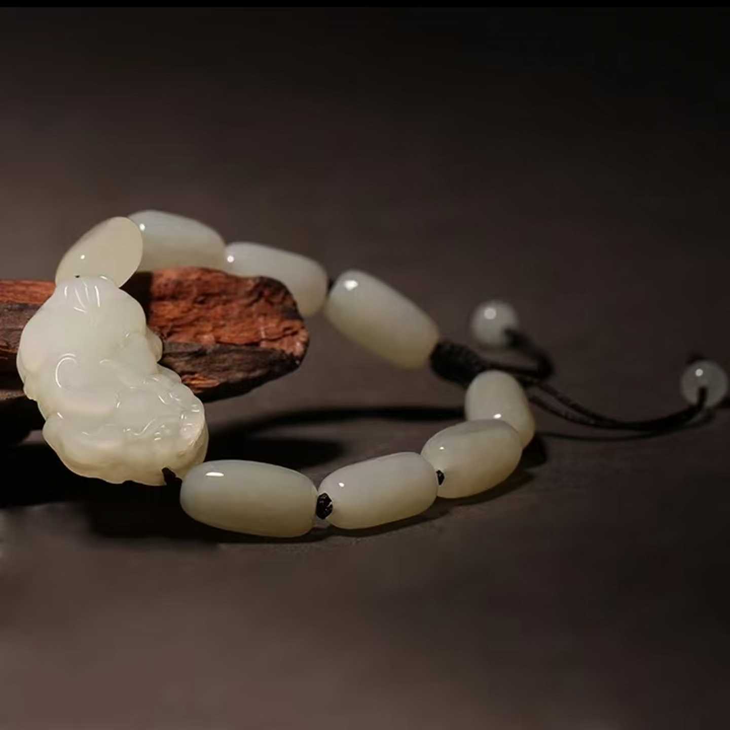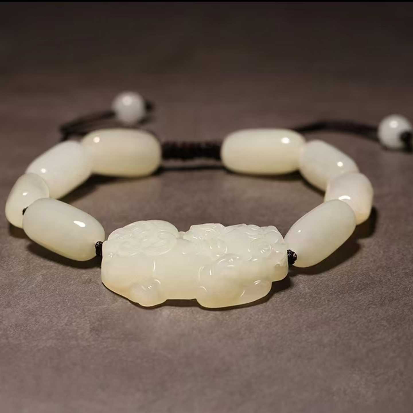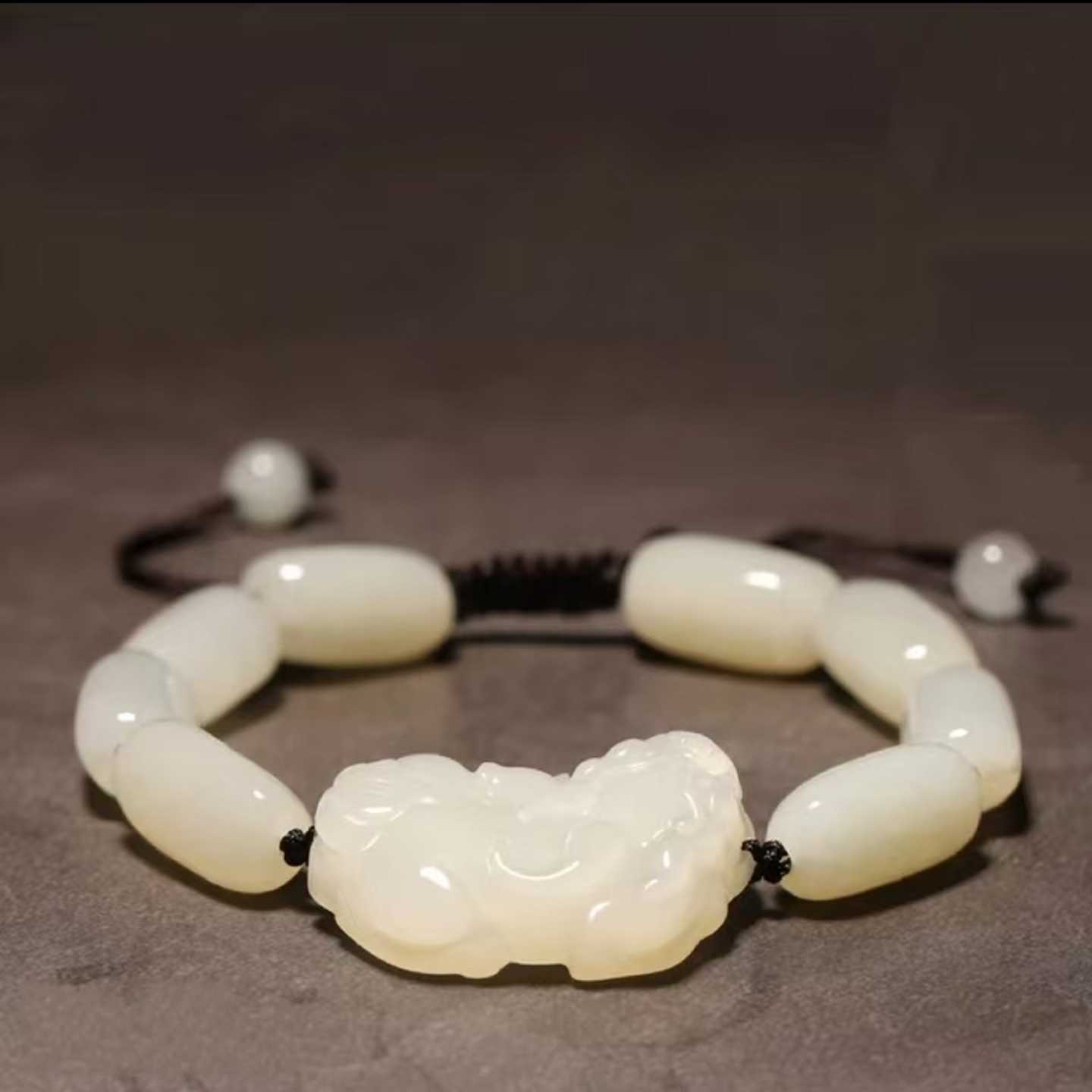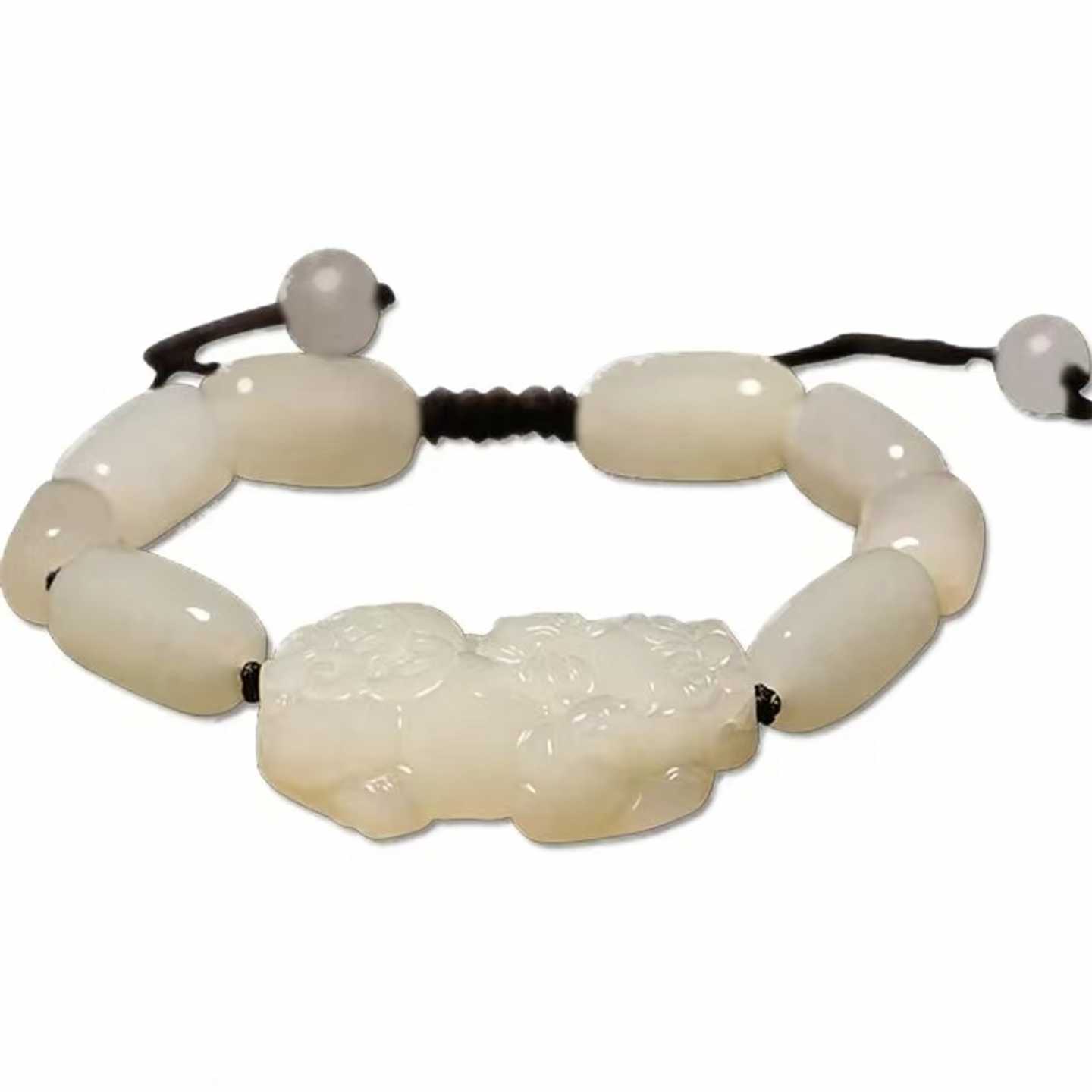 天然新疆和田玉貔貅手链正品白玉招财貔貅手串手链男女款手链包邮