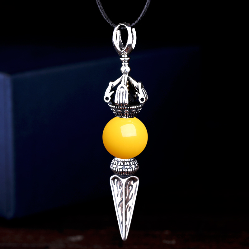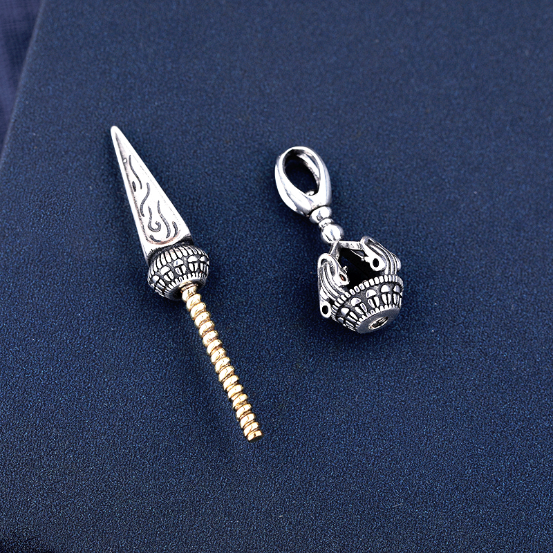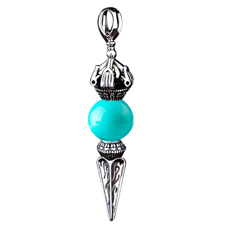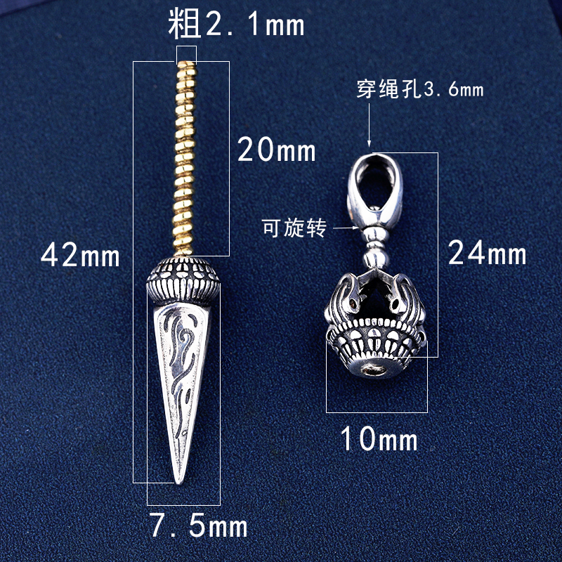 S925银吊坠空托m金刚杵镶嵌绿松石南红蜜蜡桶珠圆珠降魔杵项坠银
