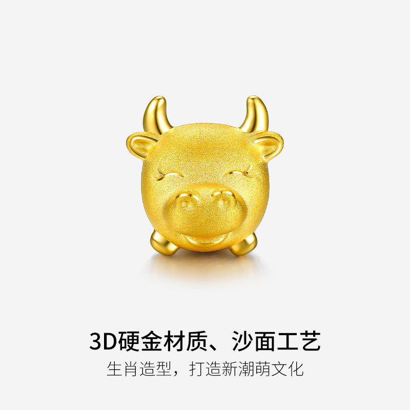 周六福黄金转运珠定价3d硬金手串足金圣诞礼物十二生肖手绳本命年