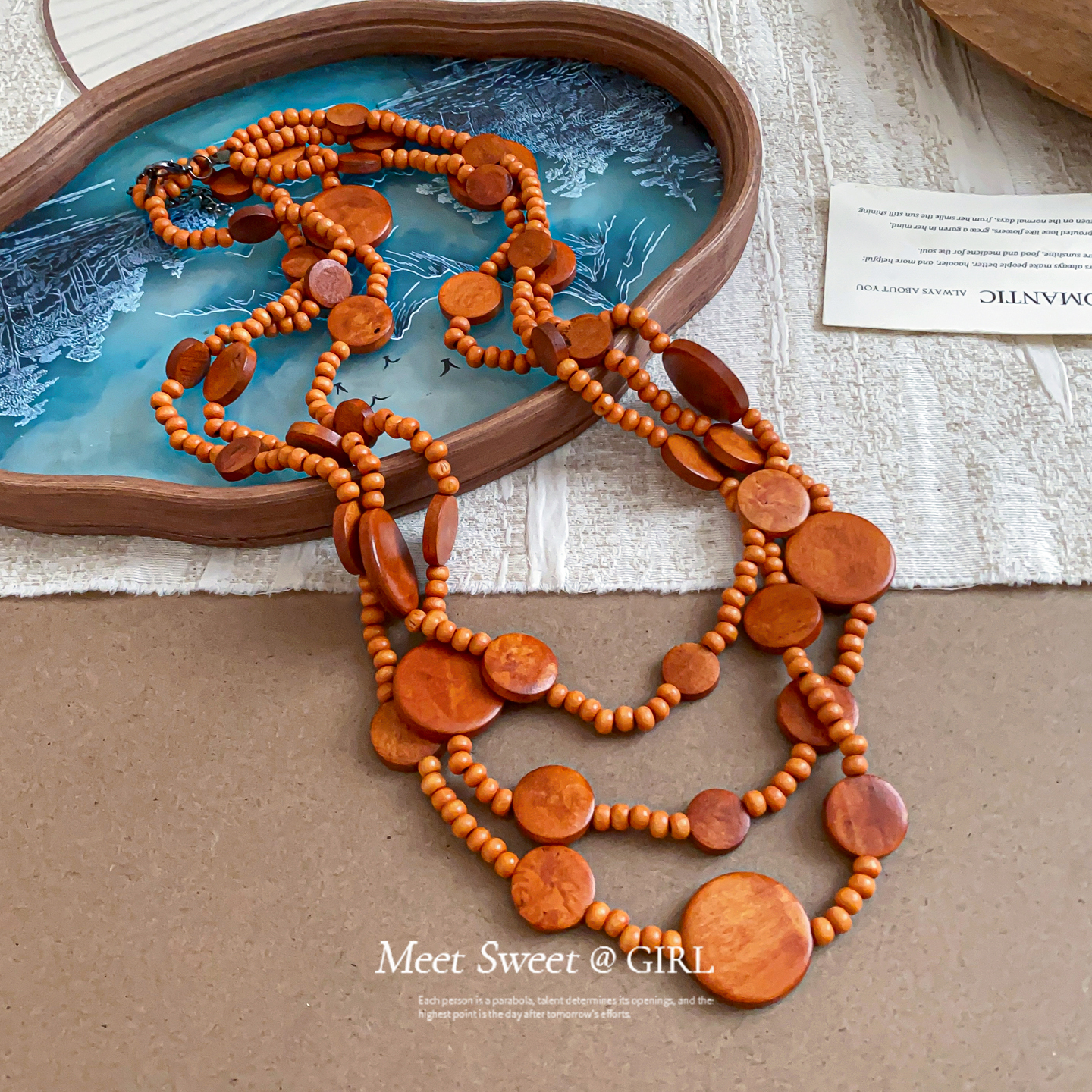 复古小众多层木珠串珠项链女小众设计感气质毛衣链时尚个性首饰女