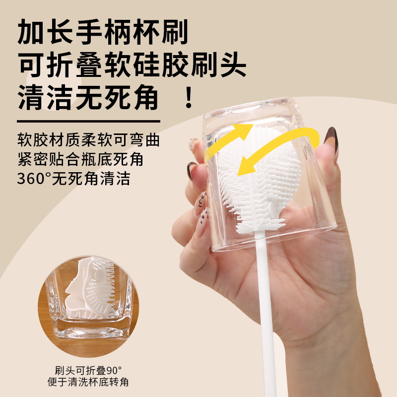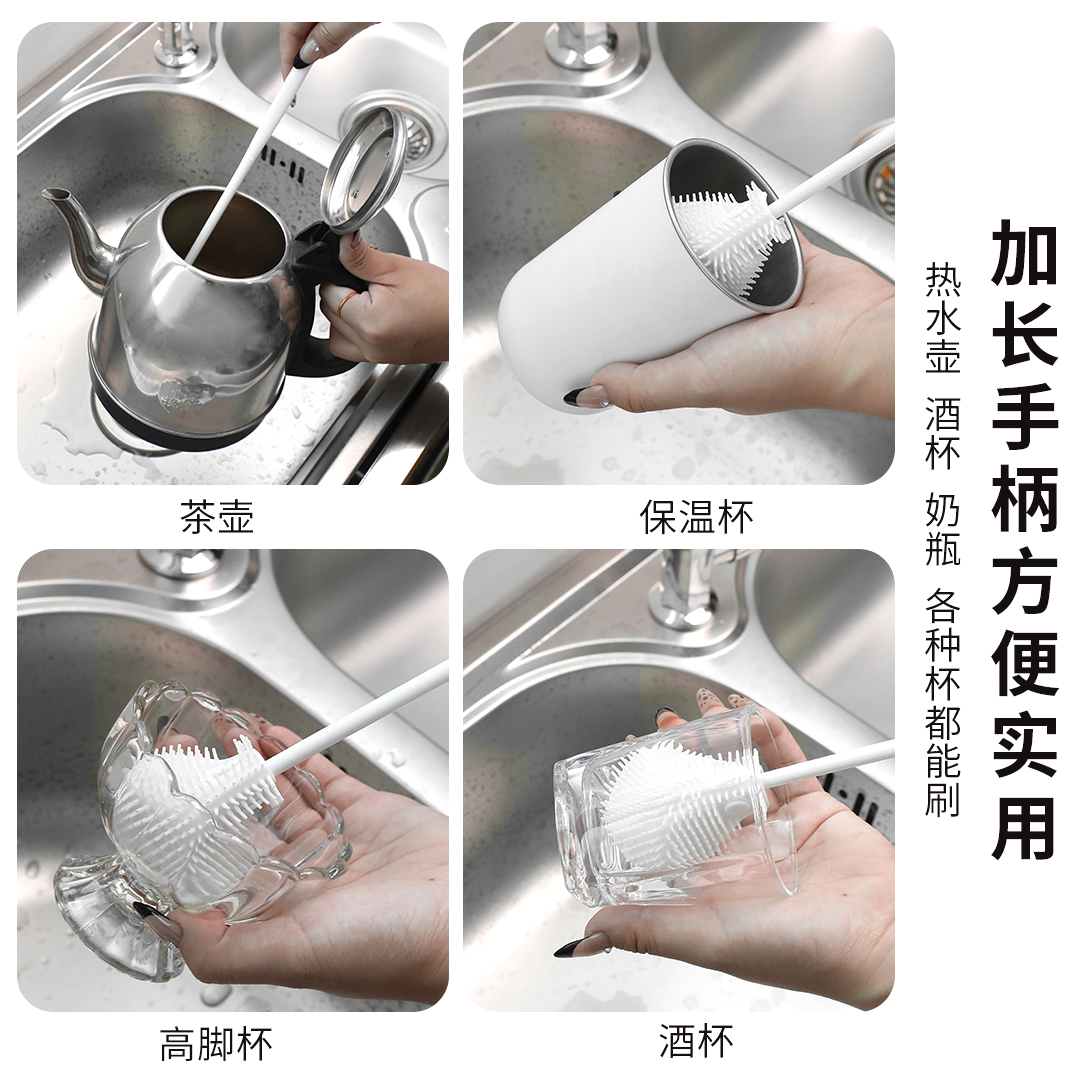 硅胶长柄杯刷小口径水杯破壁机毛刷无死角清洗神器洗杯子软毛刷子