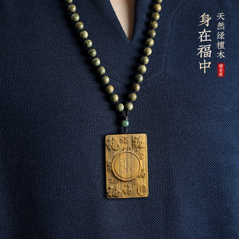 绿檀木定制刻字吊坠小叶紫檀身在福中项链防丢失腰牌车挂件钥匙扣
