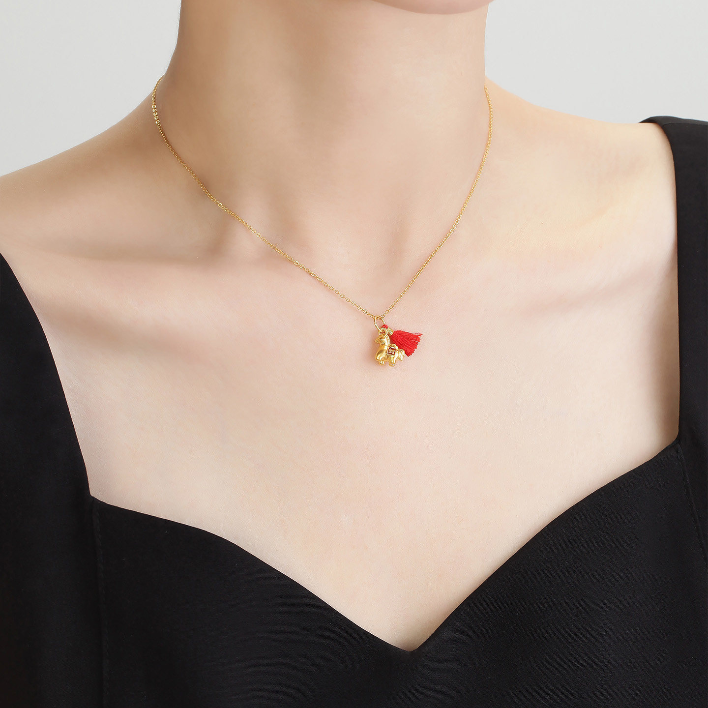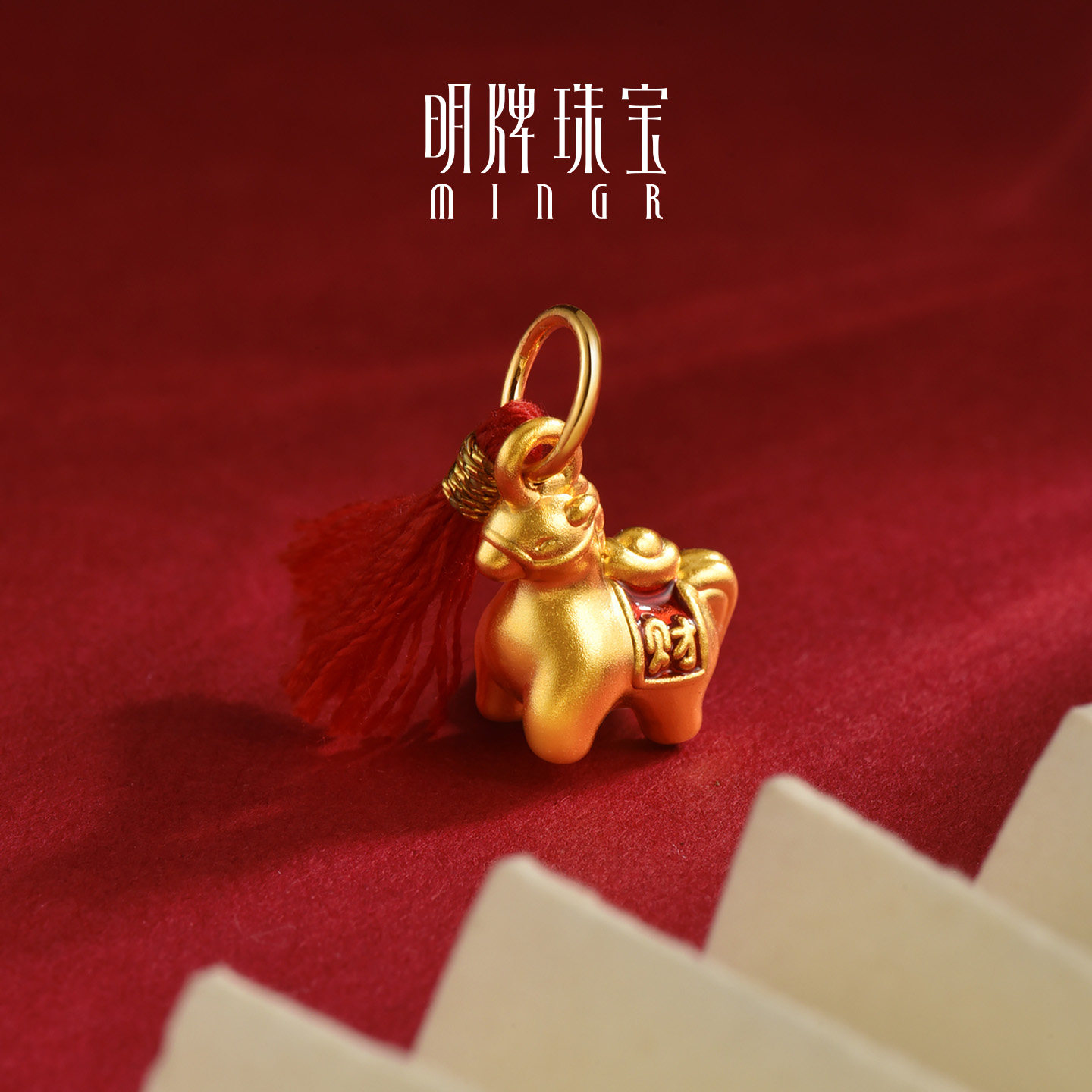 明牌珠宝金马纳财硬金吊坠 足金马年生肖金马流苏黄金项坠ASY0713