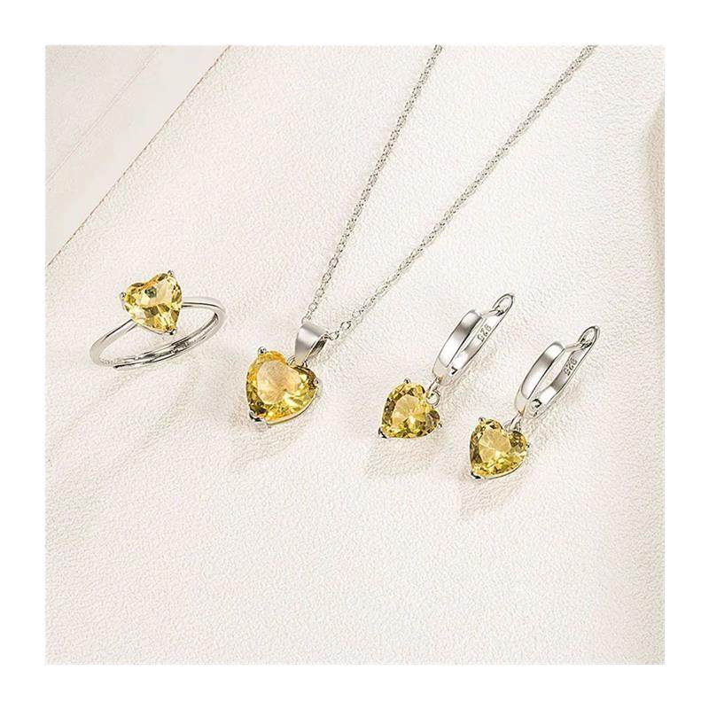 925纯银心形戒指 女士锆石银饰套装 多色可选时尚珠宝首饰 和田玉
