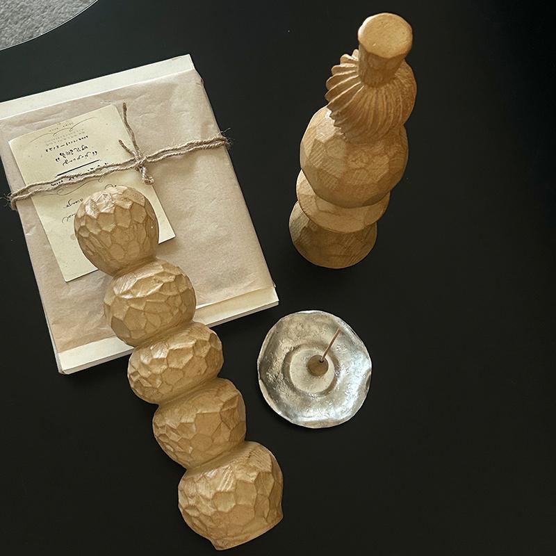 SilentWind中古侘寂风树脂几何艺术摆件组合仿木壁龛拍摄道具雕塑
