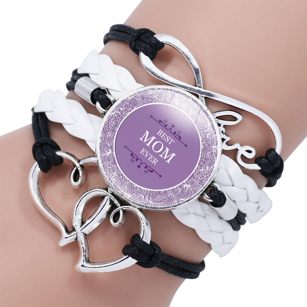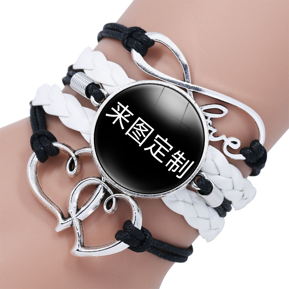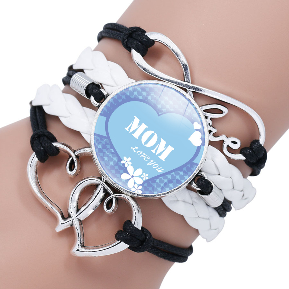 DIY配饰 MOM爱心时光宝石多层黑色多层皮革手链 LOVE母亲节礼物