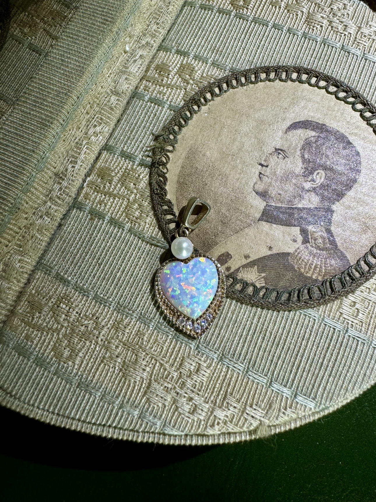 心形吊坠通体925银天然珍珠爱心银吊坠古董设计澳宝欧泊礼物女