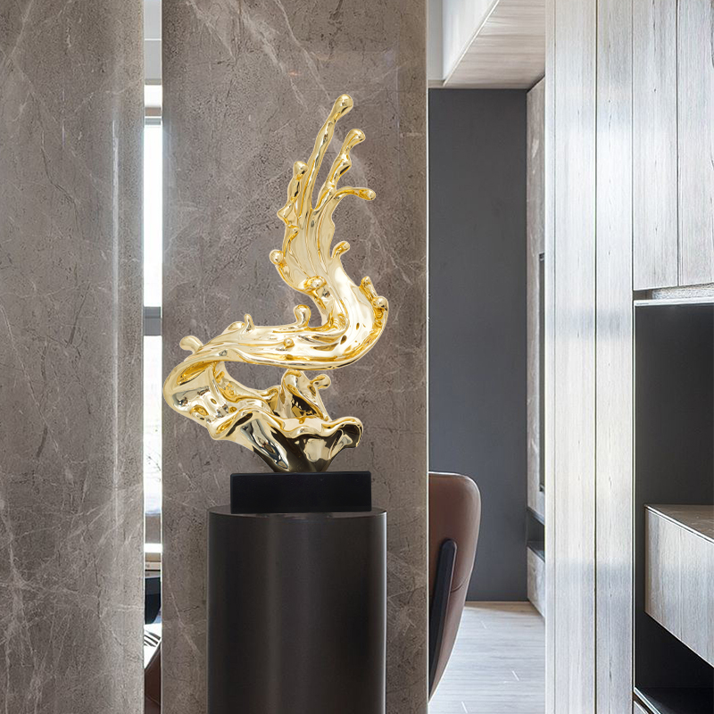 现代中式玄关酒店客厅桌面招财雕塑D摆件样板房抽象电镀艺术装饰