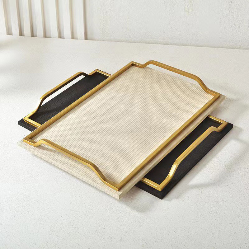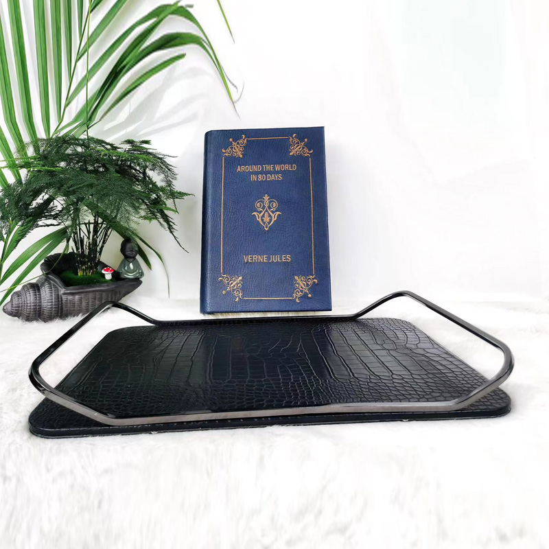 现代简约轻奢编制皮革长方形托盘摆件北欧样板间客厅茶几卧室收纳