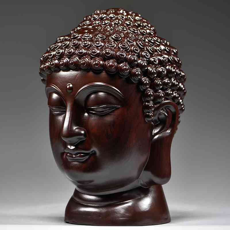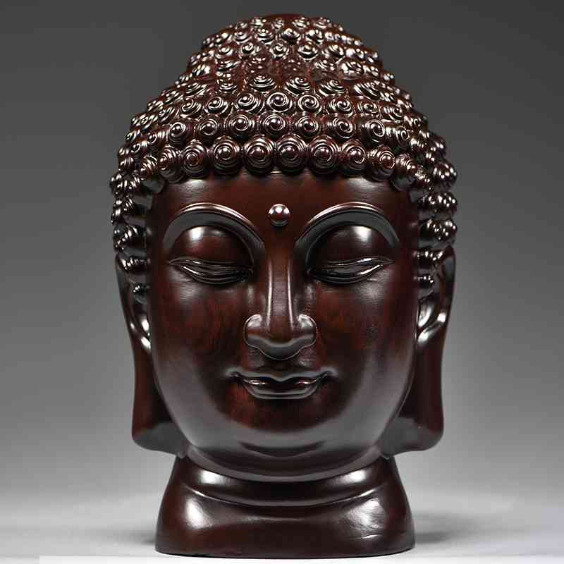 黑檀木雕新中式大号慈悲佛头佛首佛像禅意摆件玄关走廊佛系装饰品