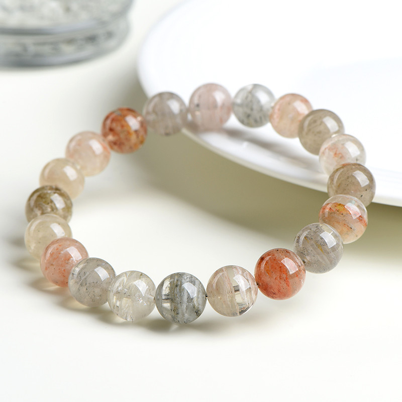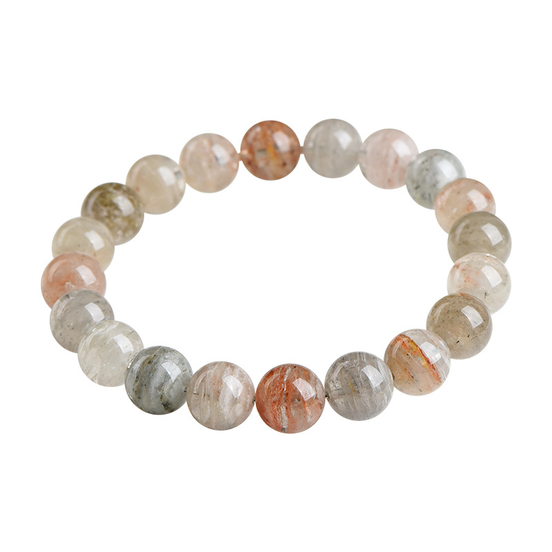 久雅水晶 天然千层花彩幽灵圆珠手链 多彩花幽灵散珠手串