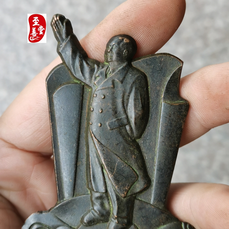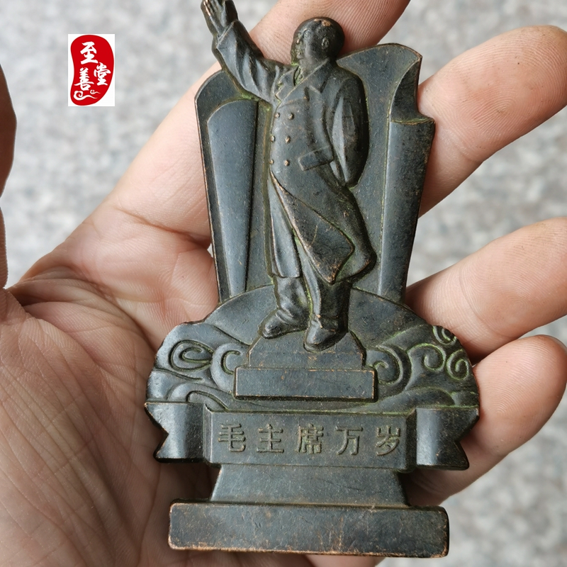 红色怀旧收藏铜器毛招手铜摆件桌面摆设