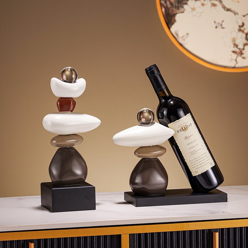 时来运转红酒架摆件石头酒柜装饰品轻奢高L档高级感客厅家居餐边