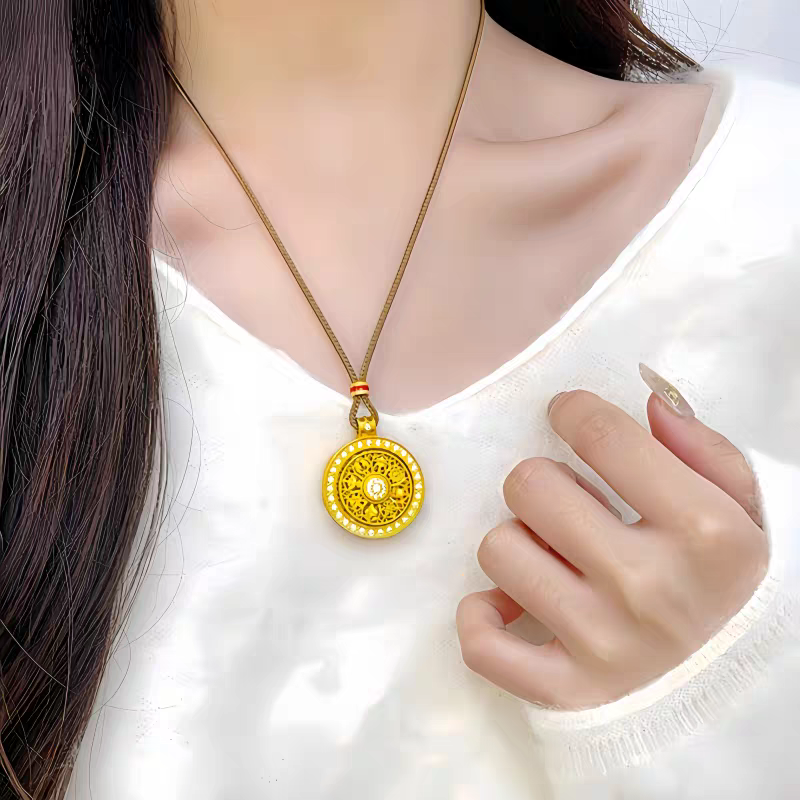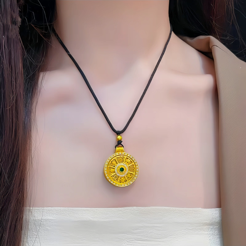 金包银项链八宝罗盘吊坠镶钻可旋转毛衣链男情侣情人节礼物送女友