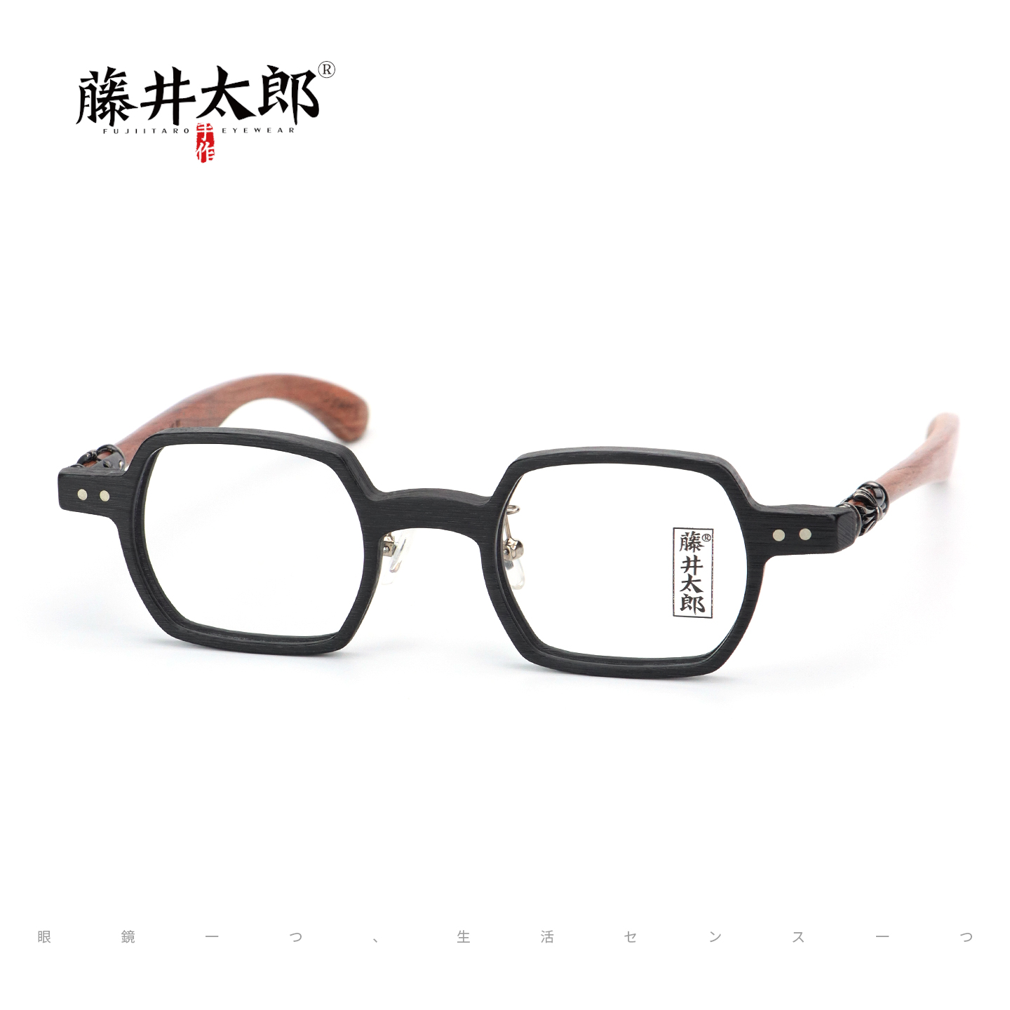 藤井太郎日系木质眼镜框黑框眼镜架男复古文艺小方框配近视眼睛女