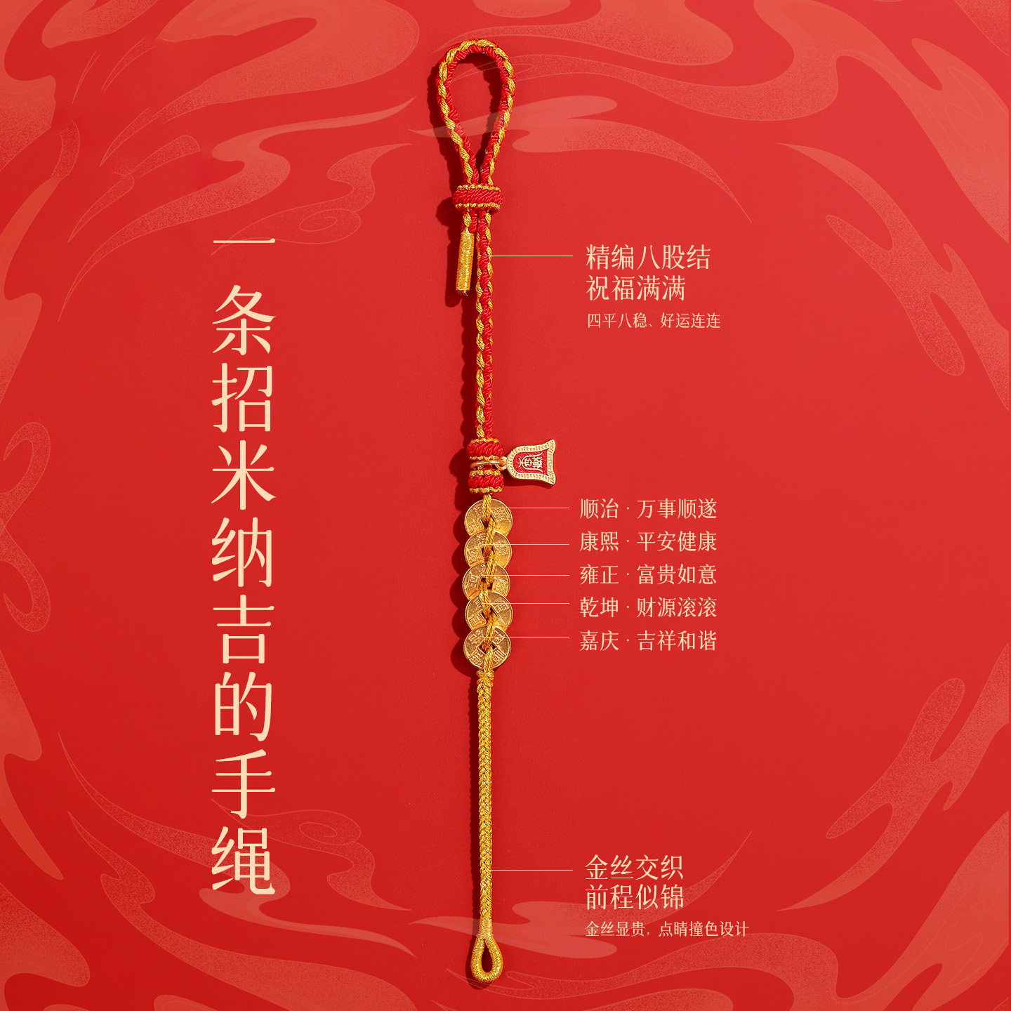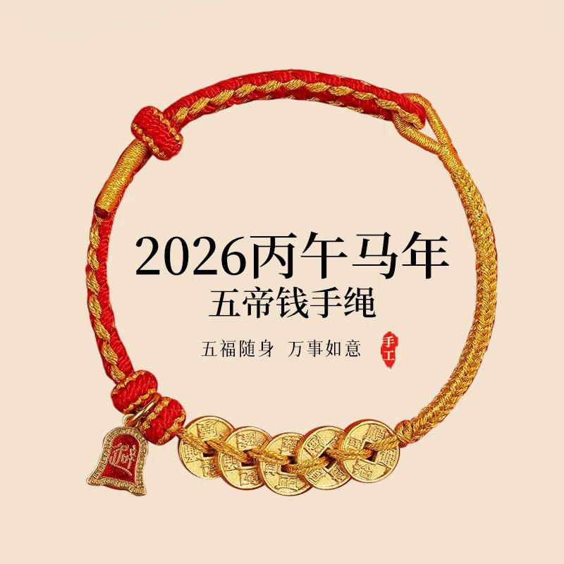 2026年马年红绳五帝钱本命年精编手绳手工编织属马红色手链女礼物
