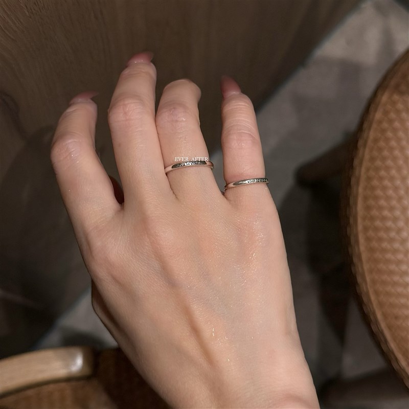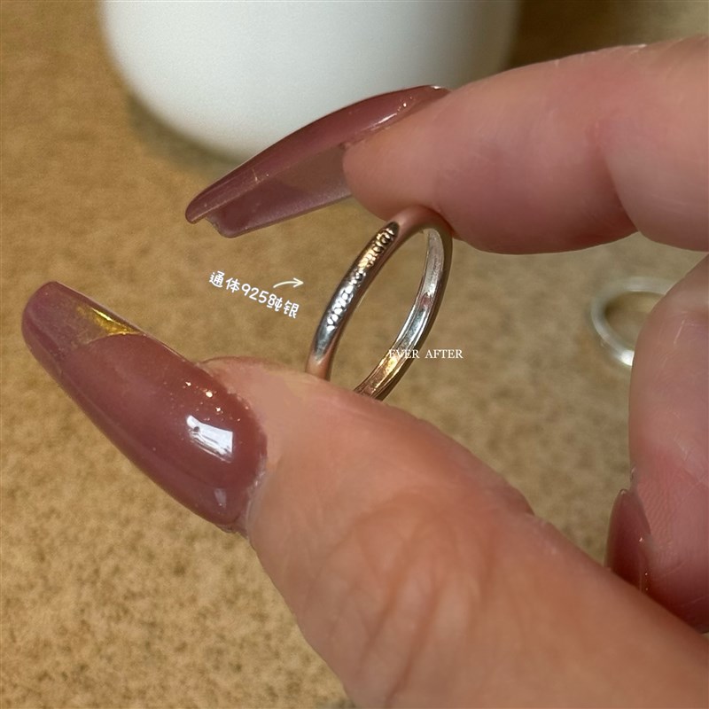 人生万岁!极小尾戒女细圈s999C足银滴釉字母素圈银戒指闭口可调节