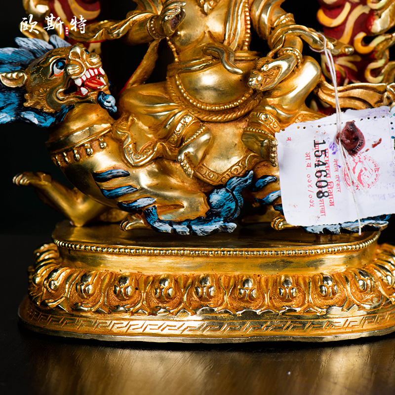 尼泊尔手工财宝天王铜像 铜全鎏金雕花玄关像像 7寸客厅中式摆件
