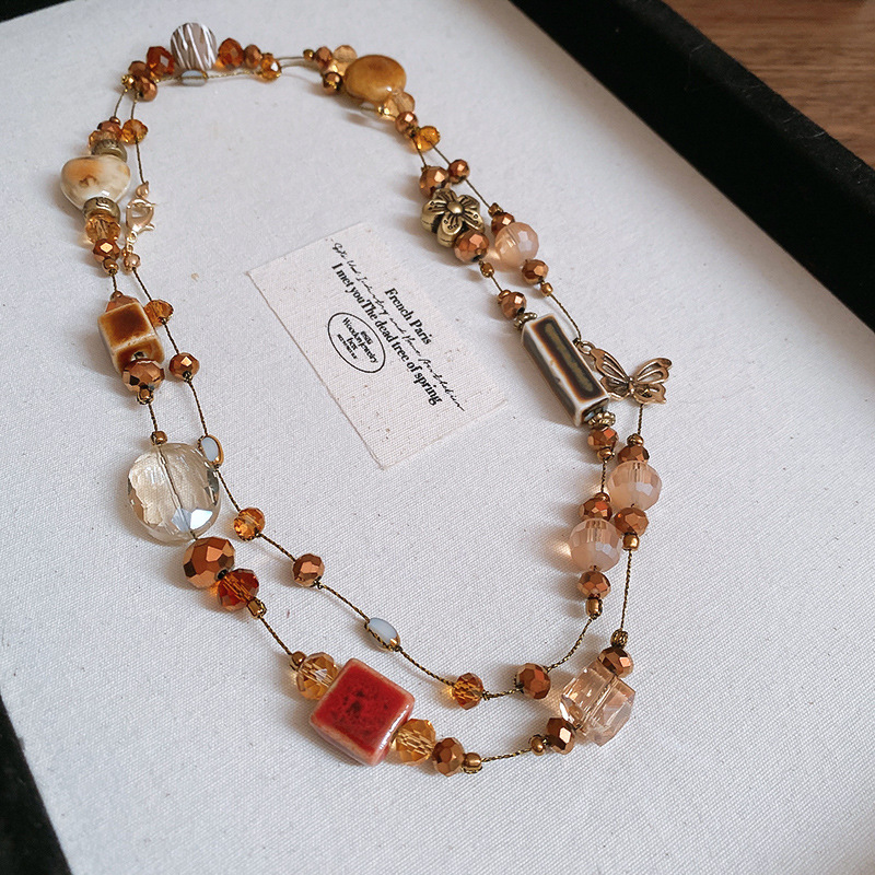 花朵陶瓷爱心串珠长款项链女款夏天新款新中式毛衣链轻奢裙子配饰