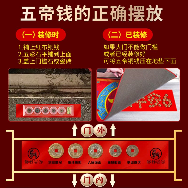 五帝钱真品压门槛出入平安入户门过门石下压铜Q钱古币黄铜乔迁新