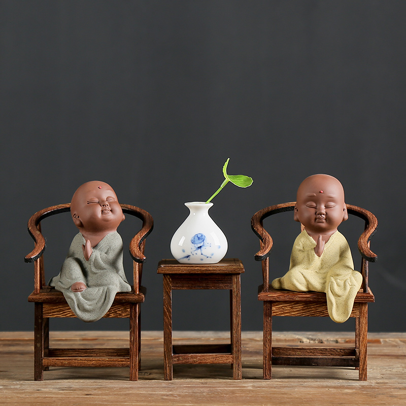 创意陶瓷小和尚禅意摆件博古架中式桌面工艺品客厅书房装饰艺术品