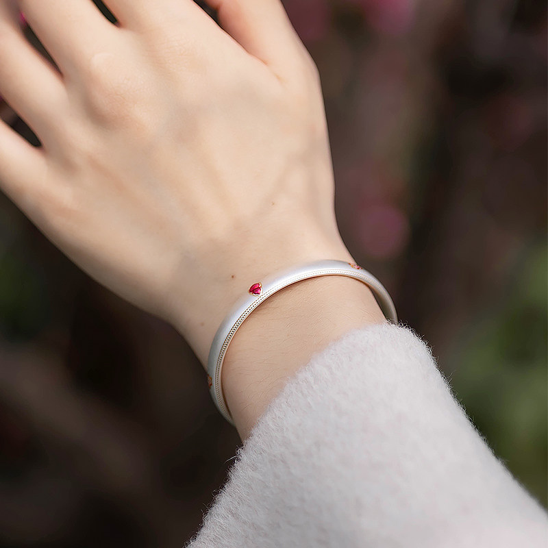 朝颜 实心足银9999祥云如意福禄寿珐琅彩国风手镯新中式母亲节礼