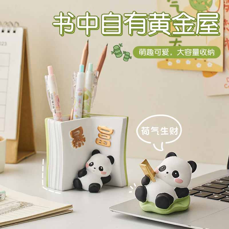 熊猫周边礼物文创笔筒办公室桌面小摆件情绪稳定治愈女生工位装饰