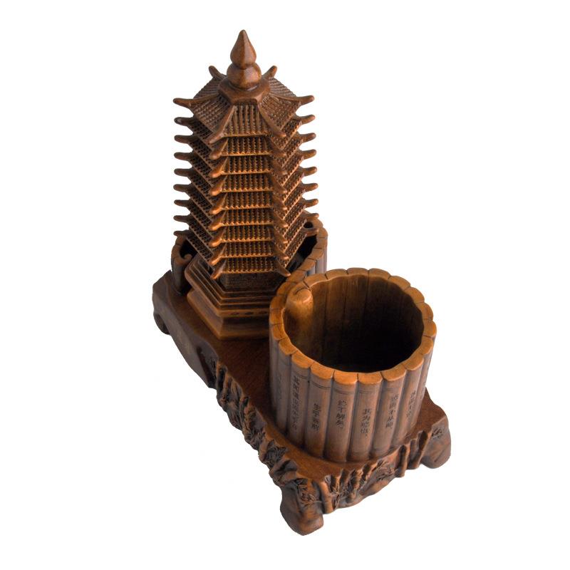 创意款树脂摆件九层文昌塔笔筒摆件 仿木佛塔宝塔办公室摆件 招财
