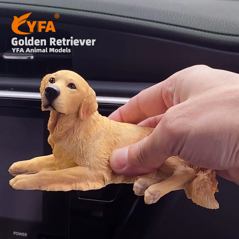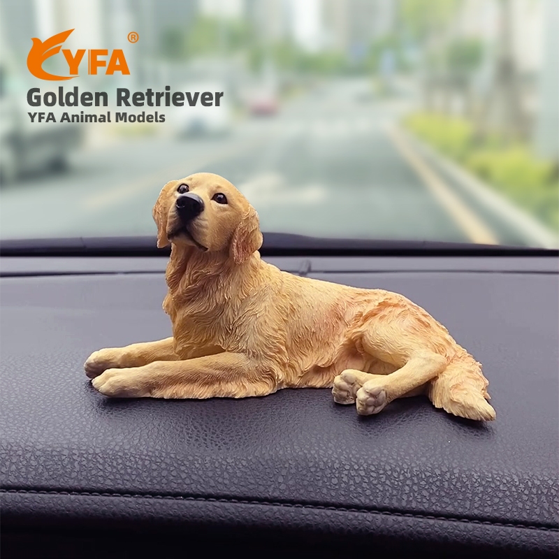 吉佳美YFA模玩金毛犬卧姿仿真狗模型手办车载摆件工艺品创意礼物