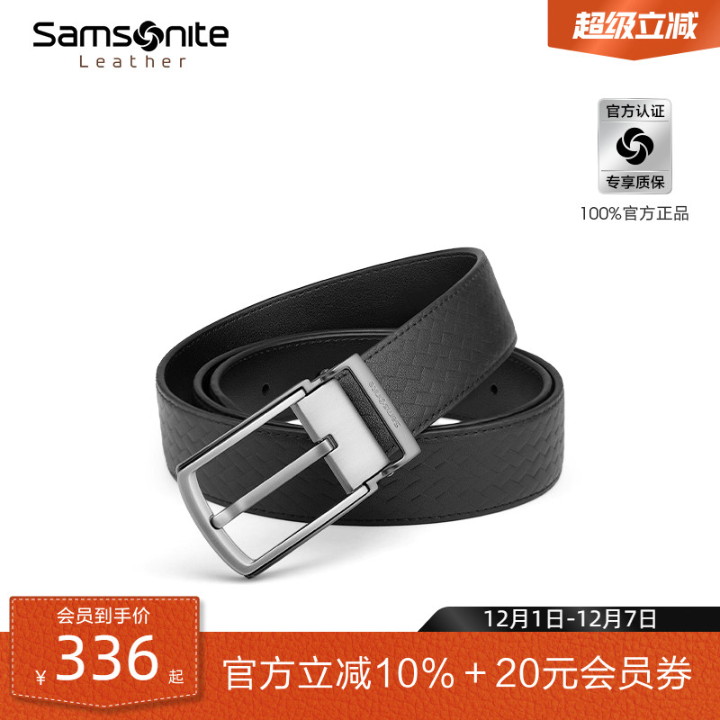 圣诞礼物Samsonite新秀丽皮带男款牛皮针扣皮带商务编织纹裤带NQ1