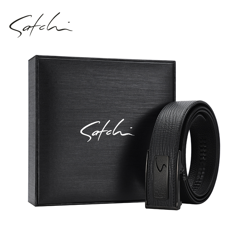 沙驰商务大气头层牛皮裤带礼盒包装内穿式皮带男时尚自动扣腰带
