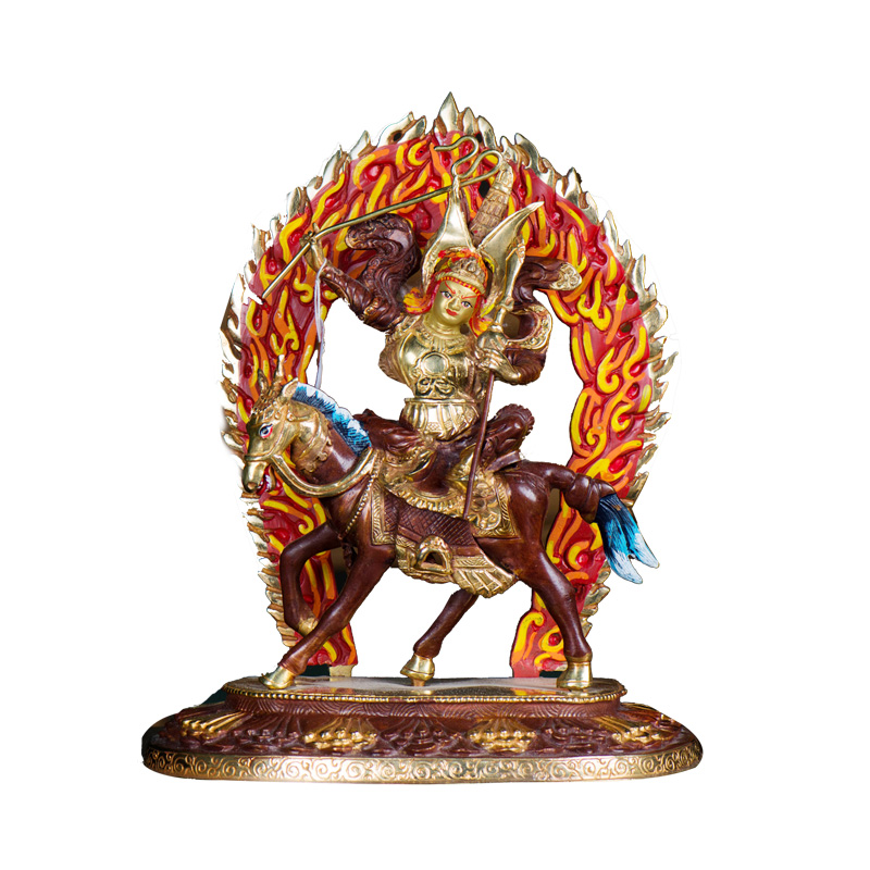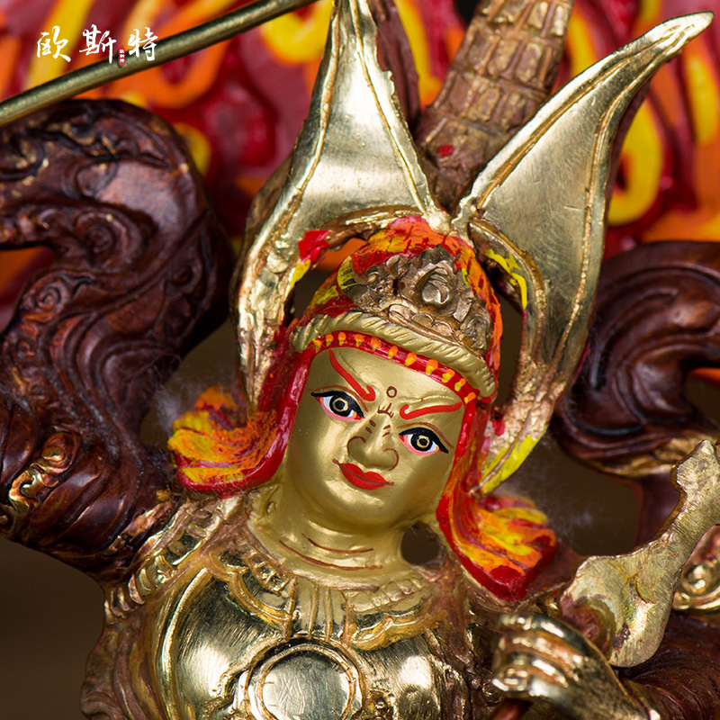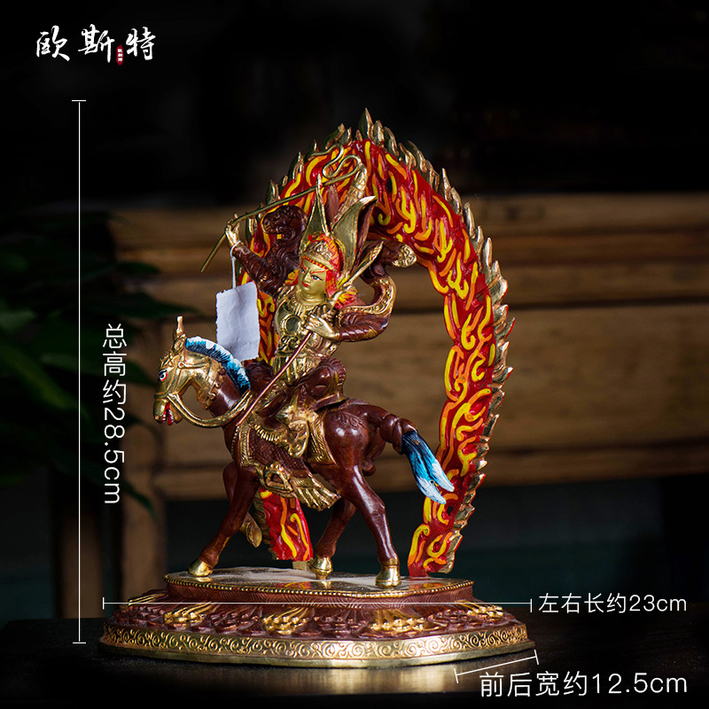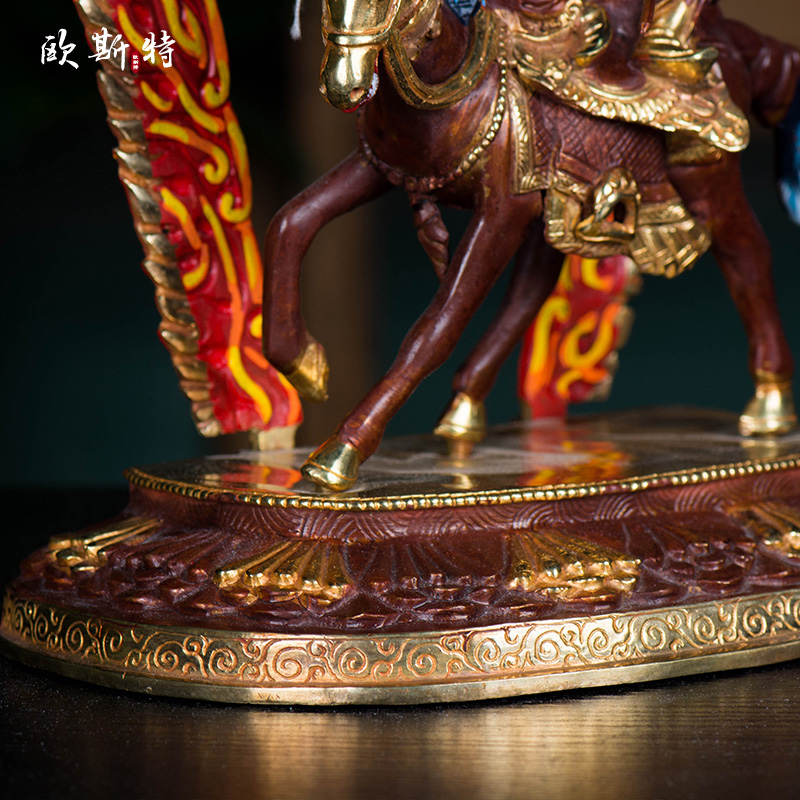 欧斯特 家居客厅摆件尼泊尔手工铜半鎏金8寸 格萨尔王玄关像铜像