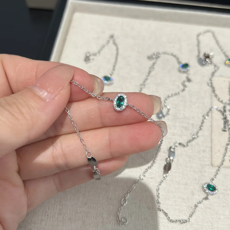培育红宝石红绳围镶钻石赞比亚祖母绿轻奢手绳手链S925纯银镶嵌
