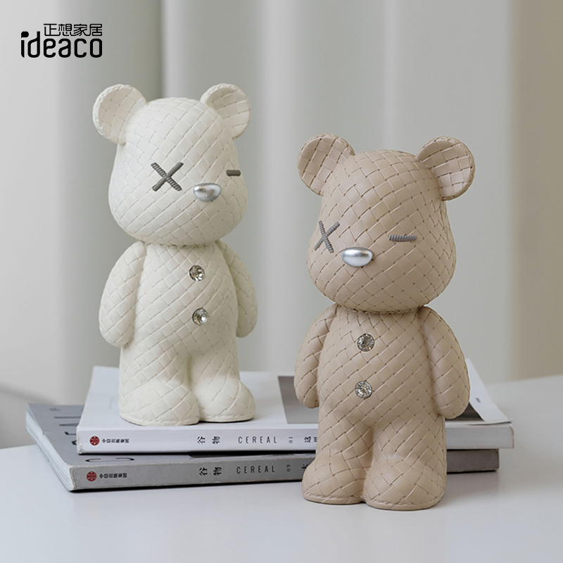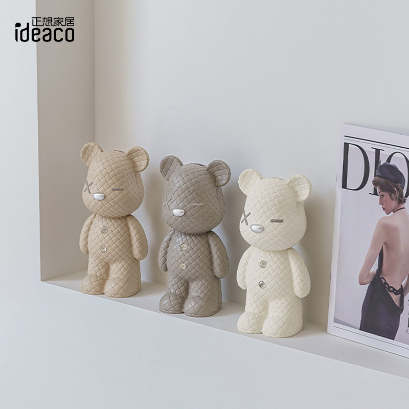 ideaco轻奢摆件客厅桌面酒柜编织纹存钱罐送礼入户玄关暴力熊装饰