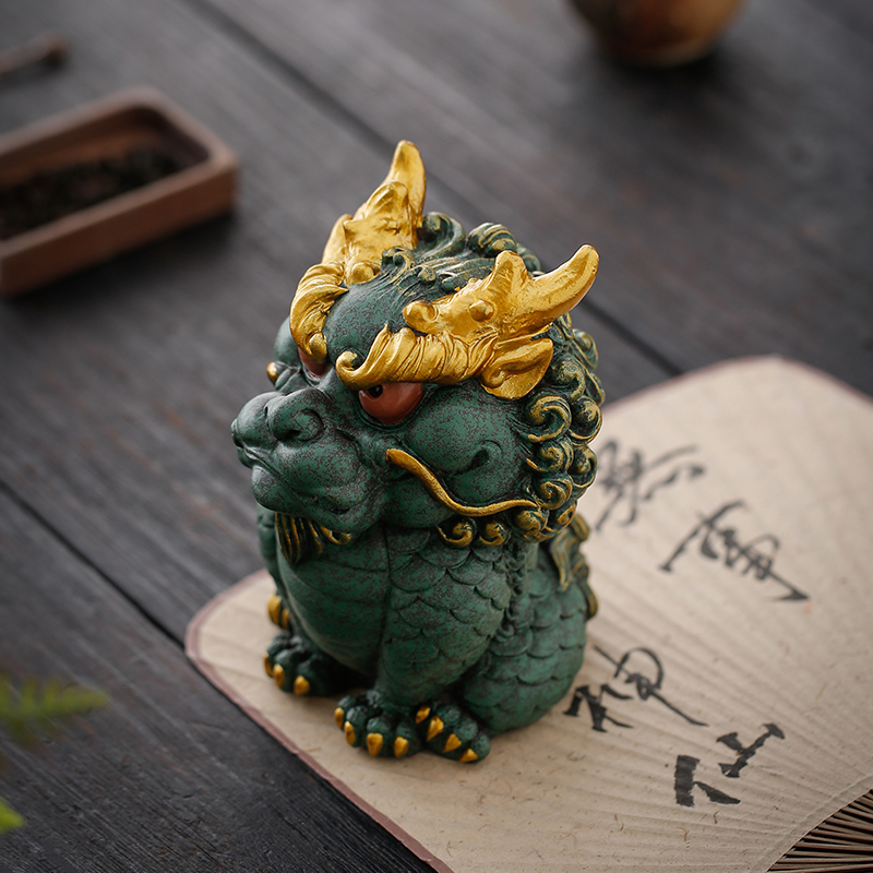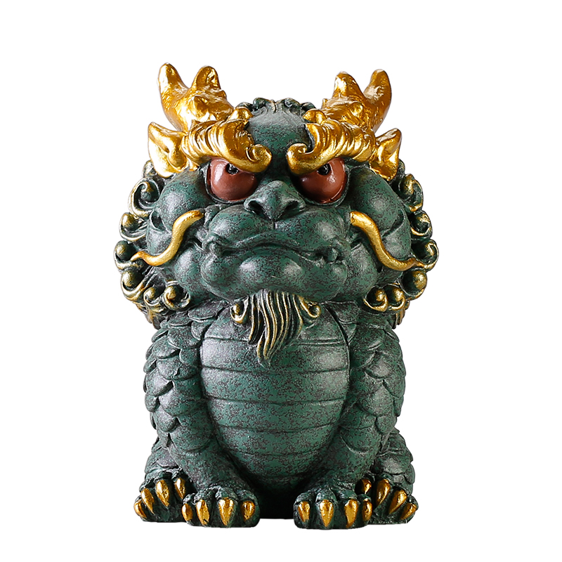 国潮精品盘龙卧龙高档摆件创意彩金麒麟龙龟家居客厅酒柜桌面装饰
