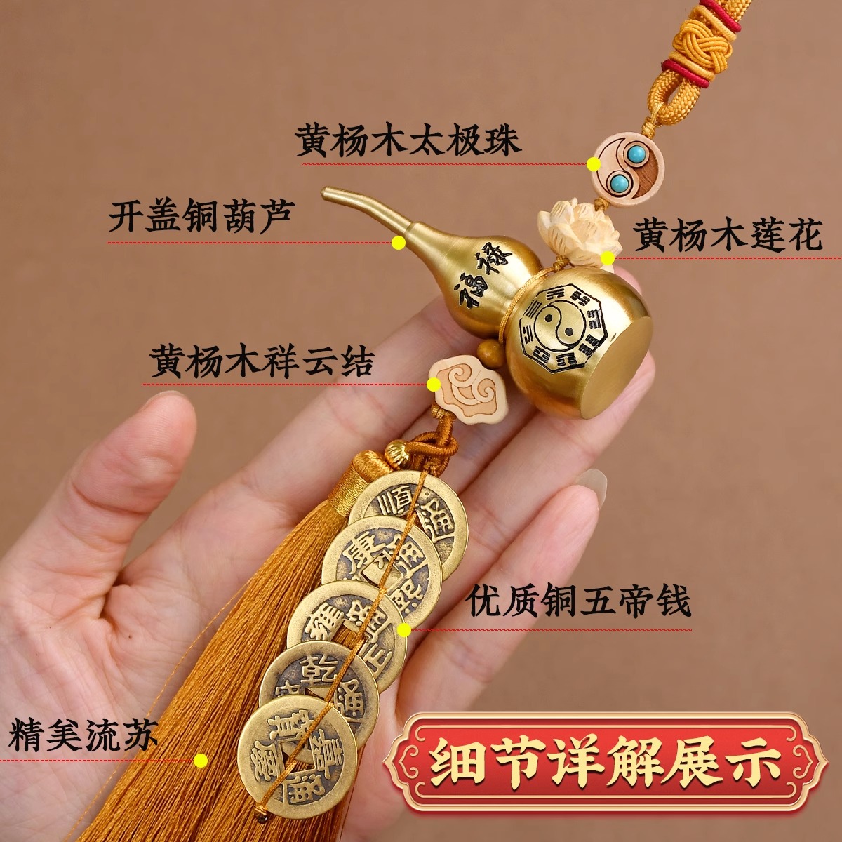 黄铜葫芦五帝钱门对门挂件开口空心胡芦大门口中国结客厅装饰