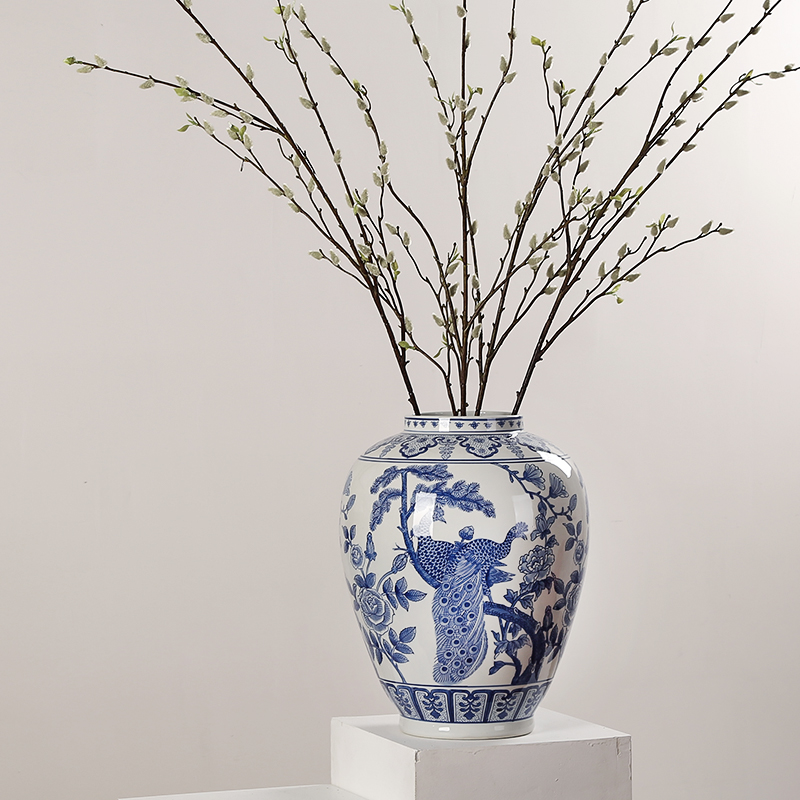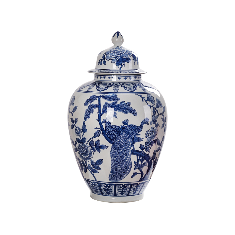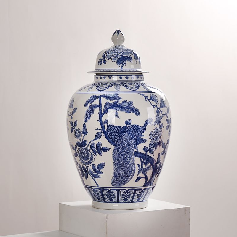 青花瓷陶瓷储物罐将军罐新中式收纳摆件客厅样Q板间博古架玄关装
