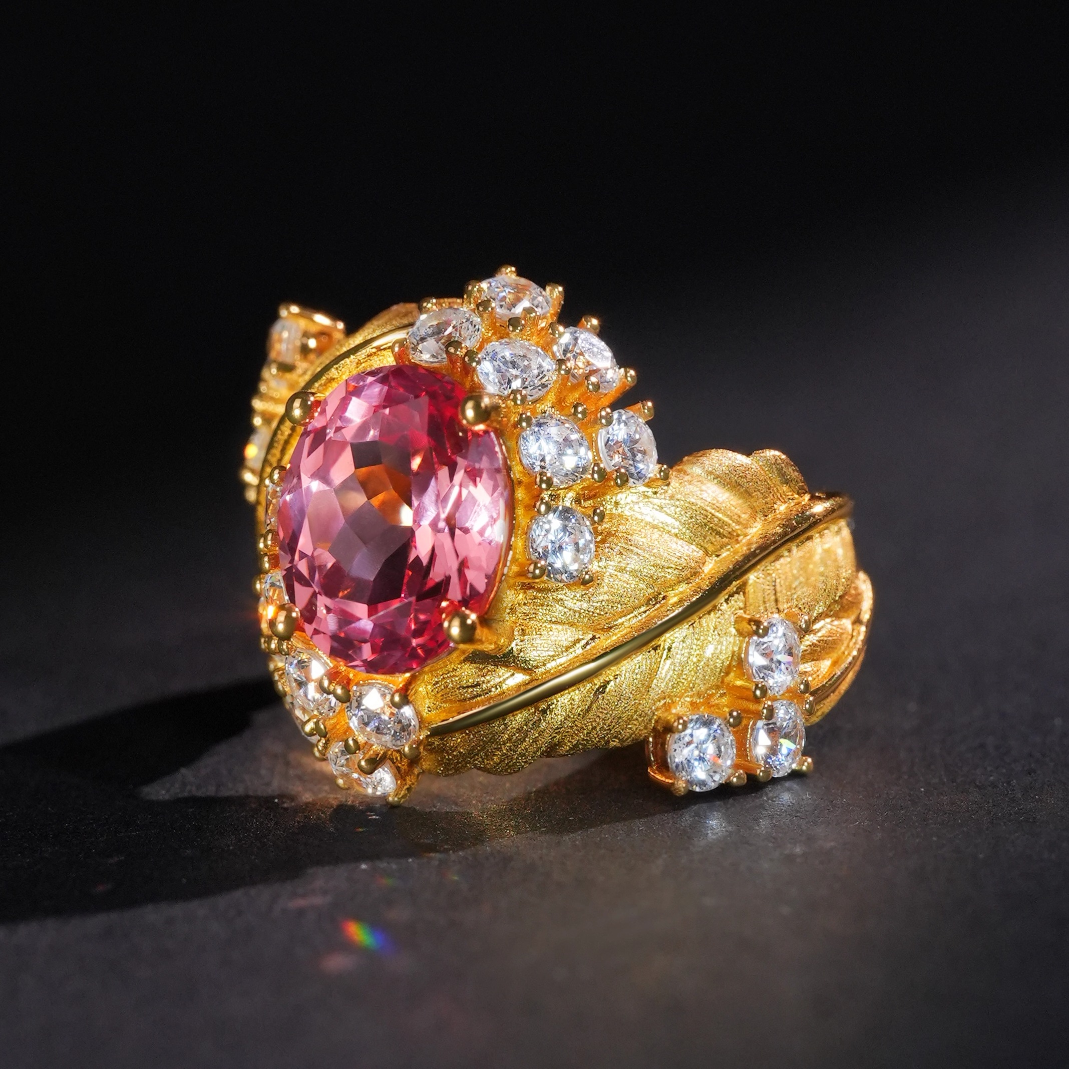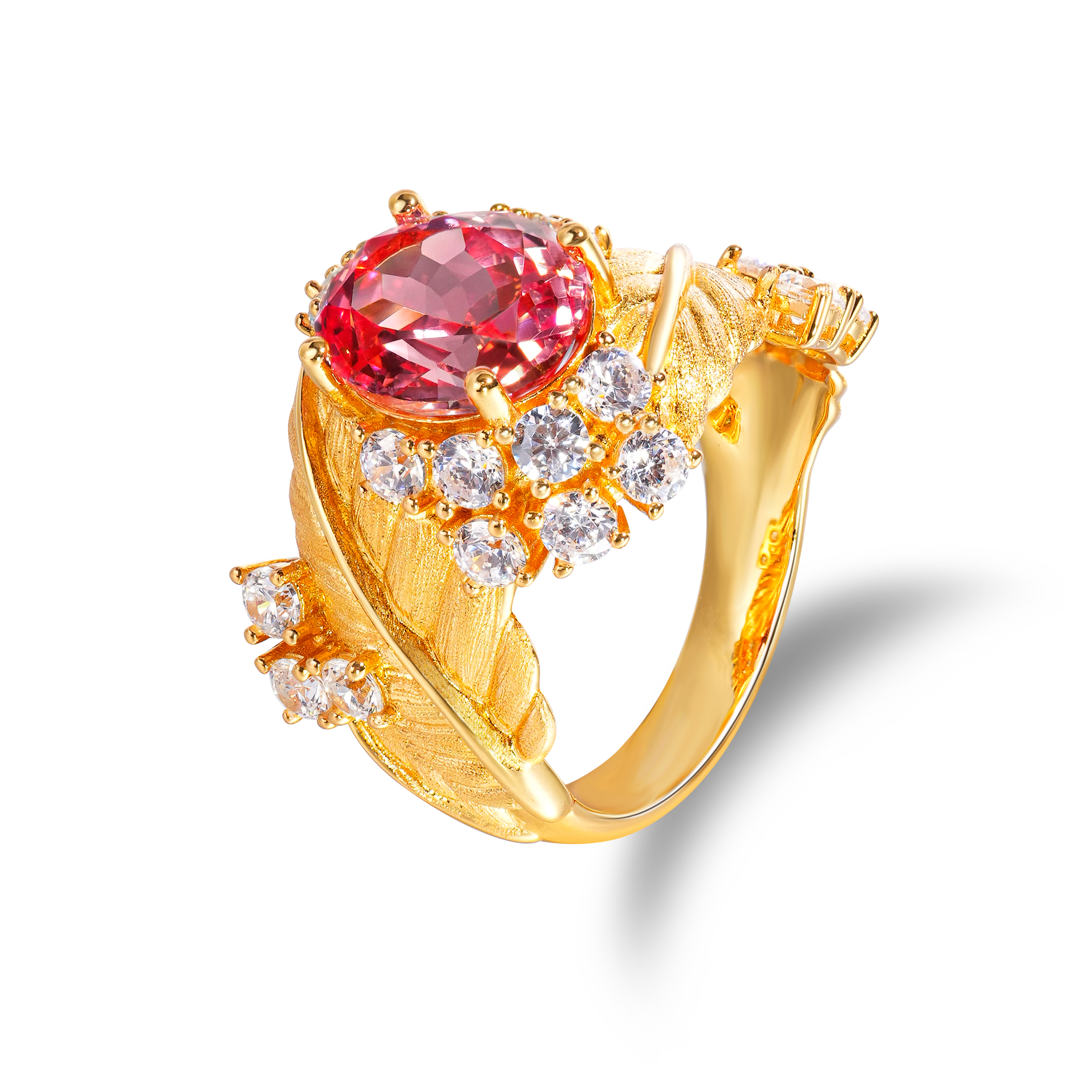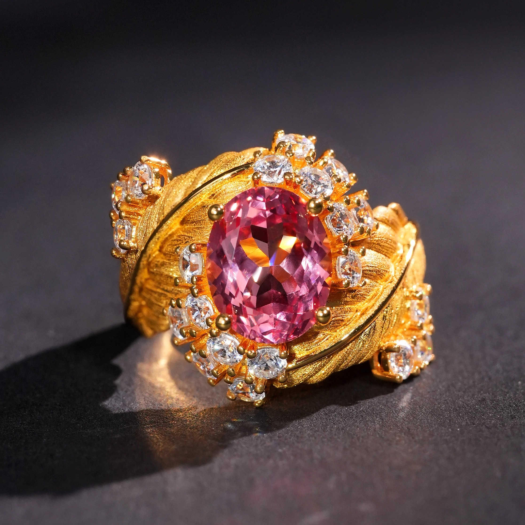 VISING珠宝3.64克拉实验室培育蓝宝石帕帕拉恰红莲花色刻丝戒指
