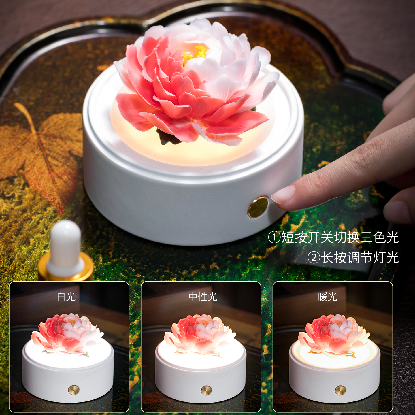 东方泥土手工非遗陶瓷牡丹花办公室客厅香薰摆件扩香器家居小夜灯