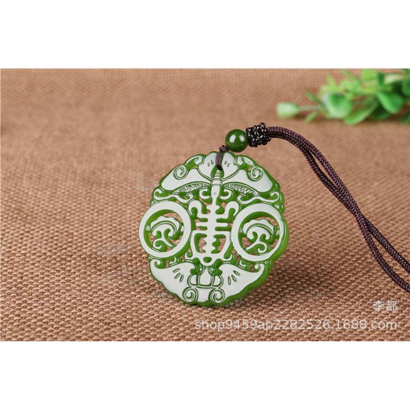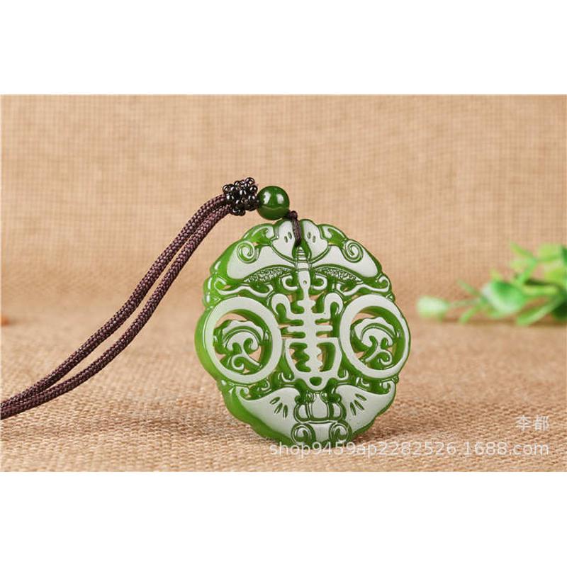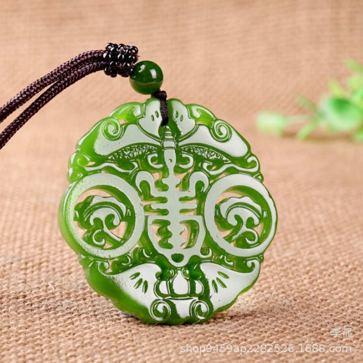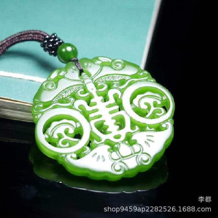 佩玉和田玉男女镂空福寿双全牌眼前玉挂件寿在仿古福款碧玉坠吊字