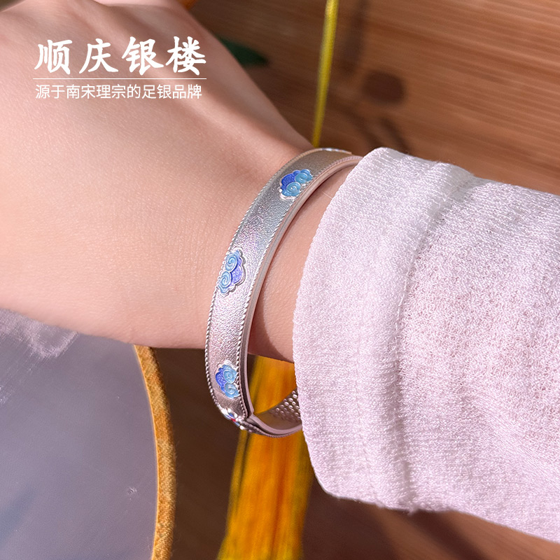 顺庆银楼足银9999云韵珐琅彩祥云如意手镯新中式国风手环送女友