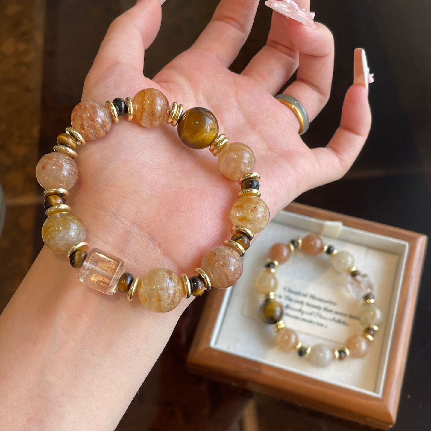 天然千层幽灵黄虎眼手链女款时尚饰品礼物送女友闺蜜生日礼物