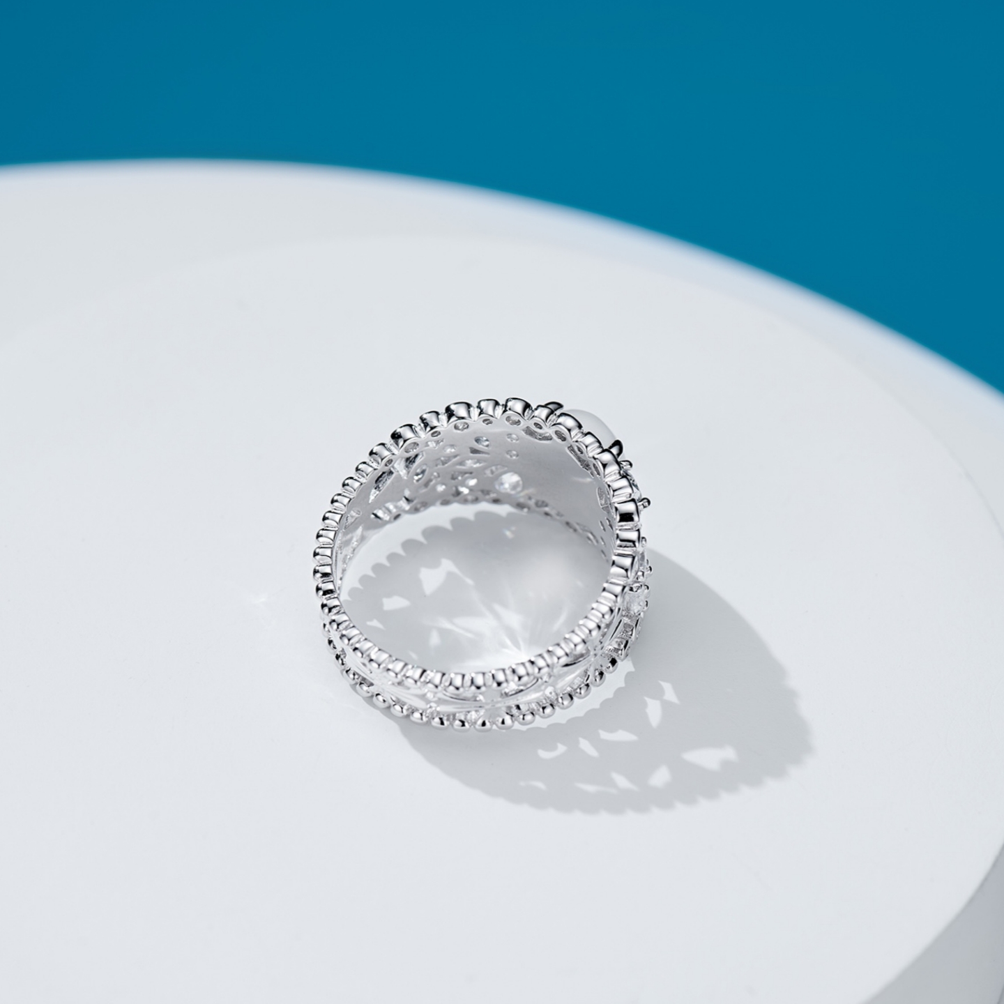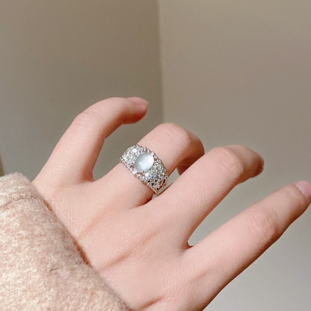 新中式微棉高冰6*8m水沫玉蛋面镂空排钻戒指女925银精致复古蛋形