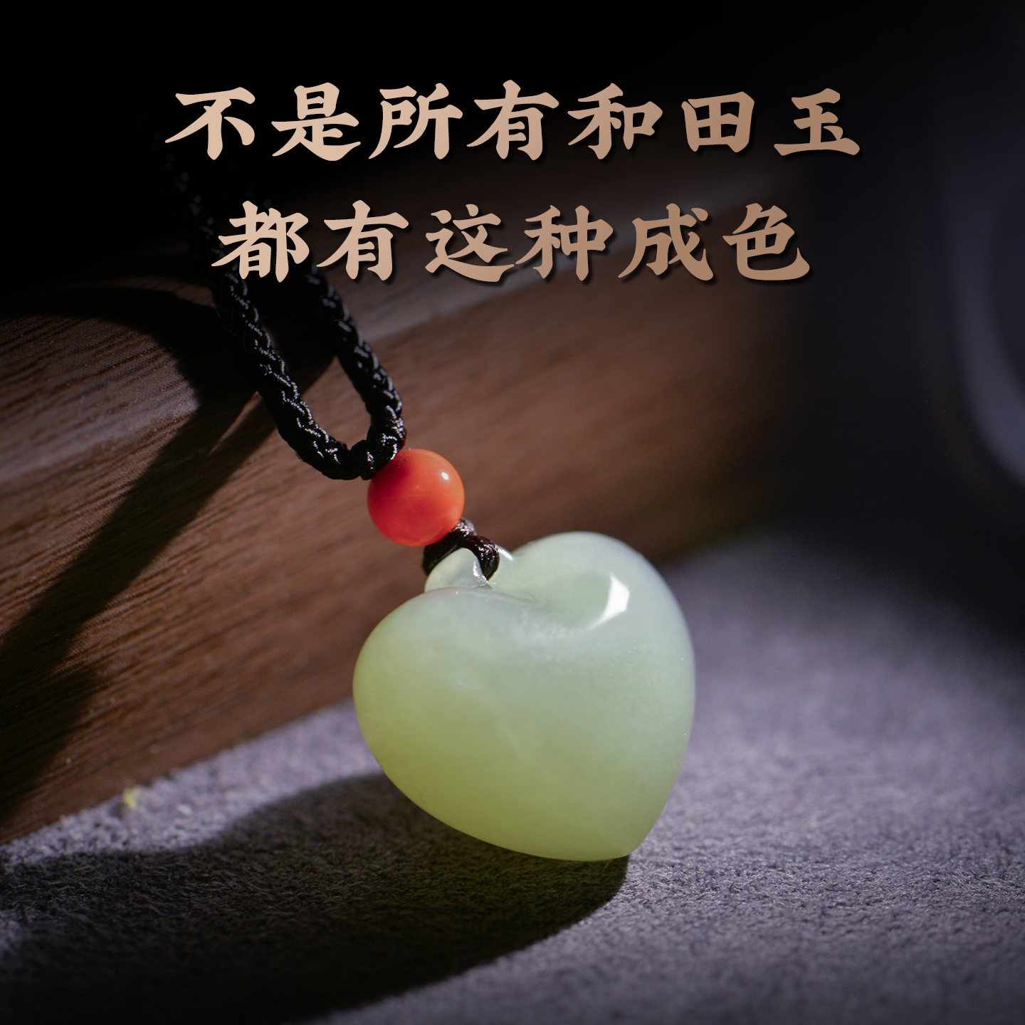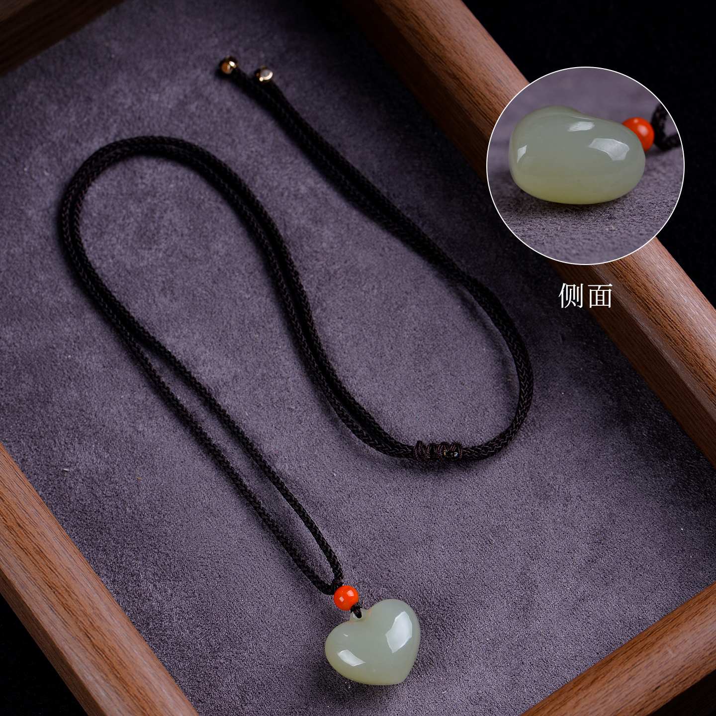 正品天然新疆和田玉爱心吊坠女款心形送女友礼物挂件项链玉佩情侣