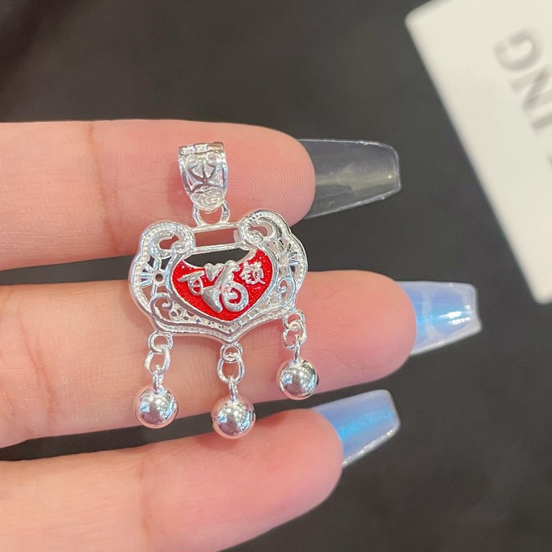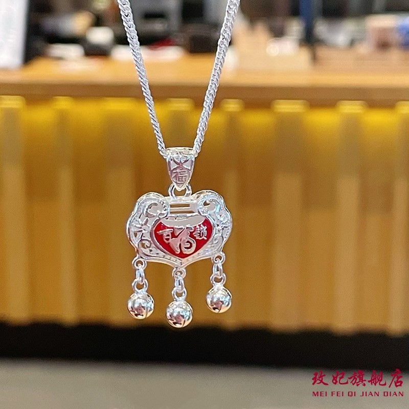 玫妃正生平安百福锁包纯银项链足银999女宝宝儿童大人生日礼物