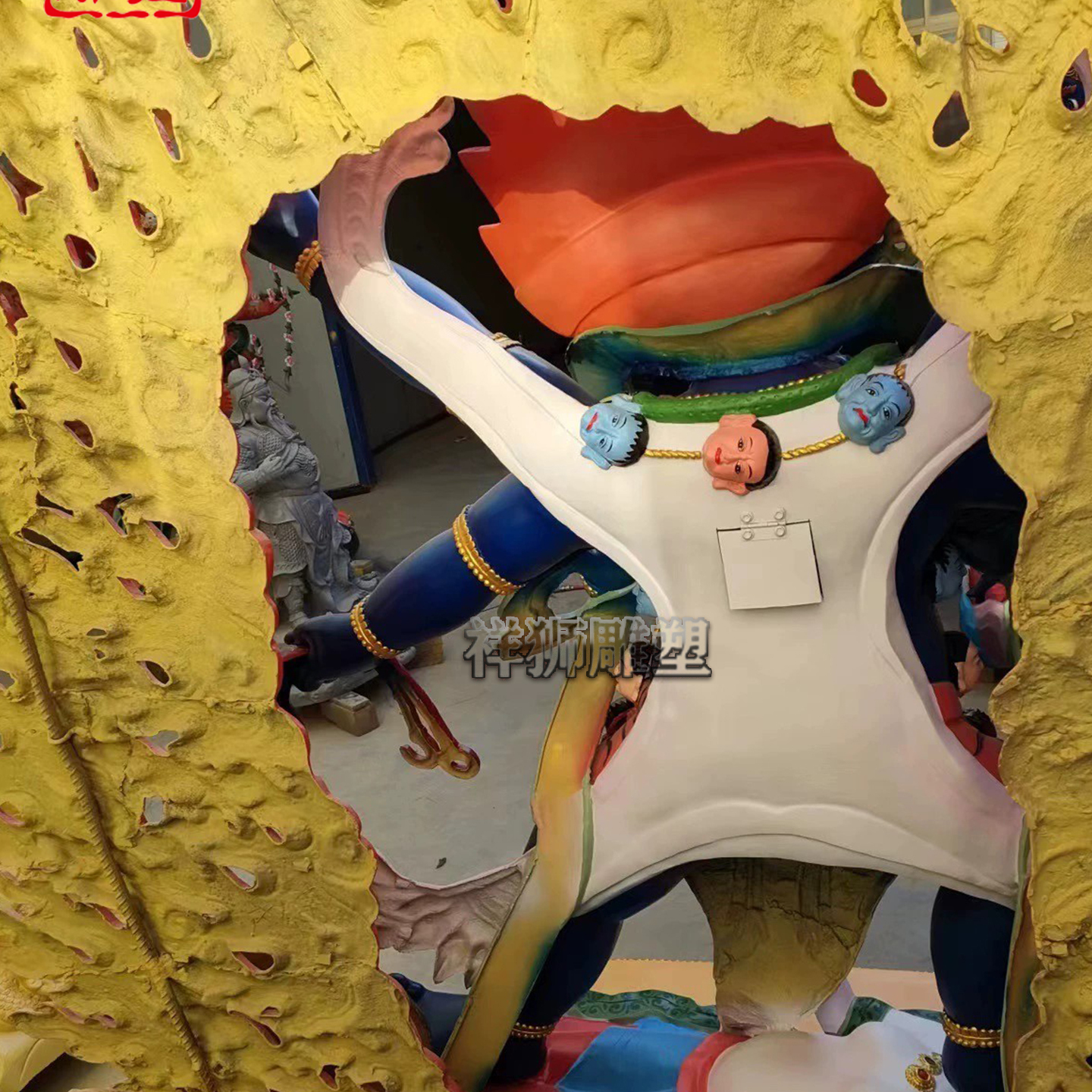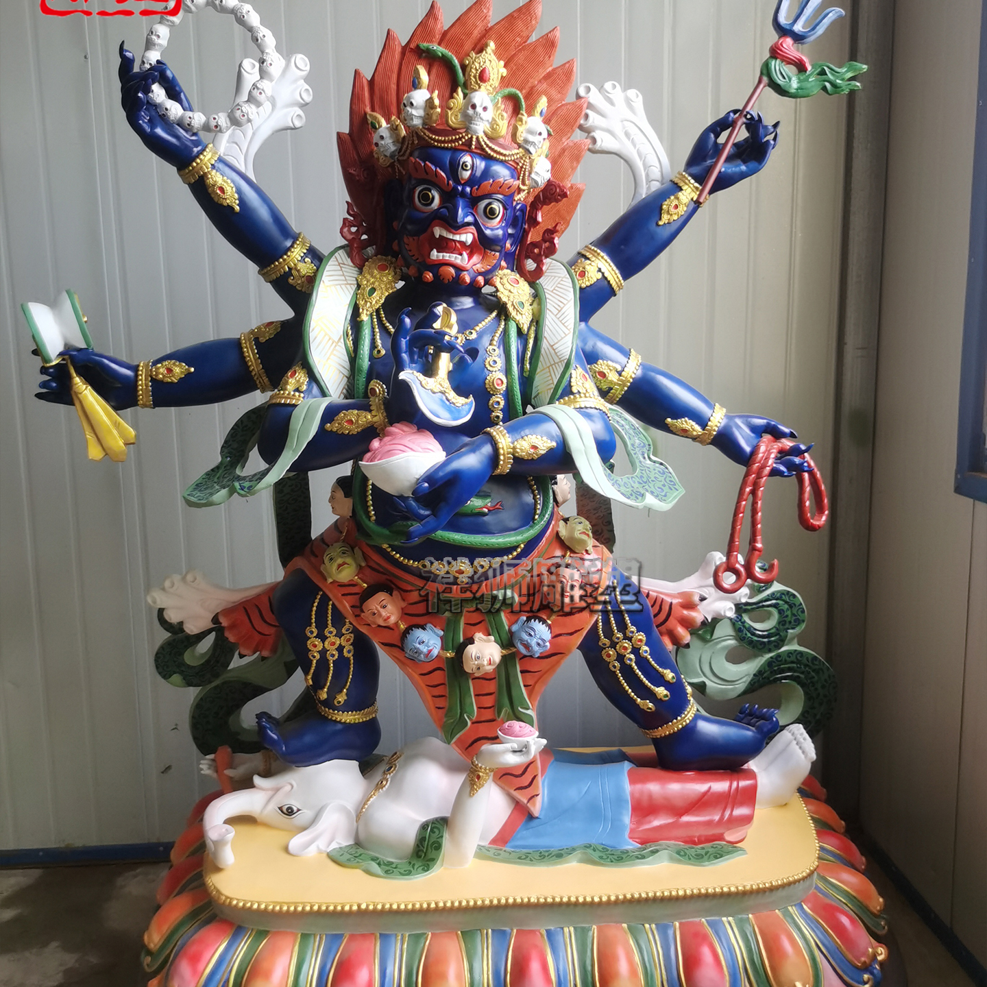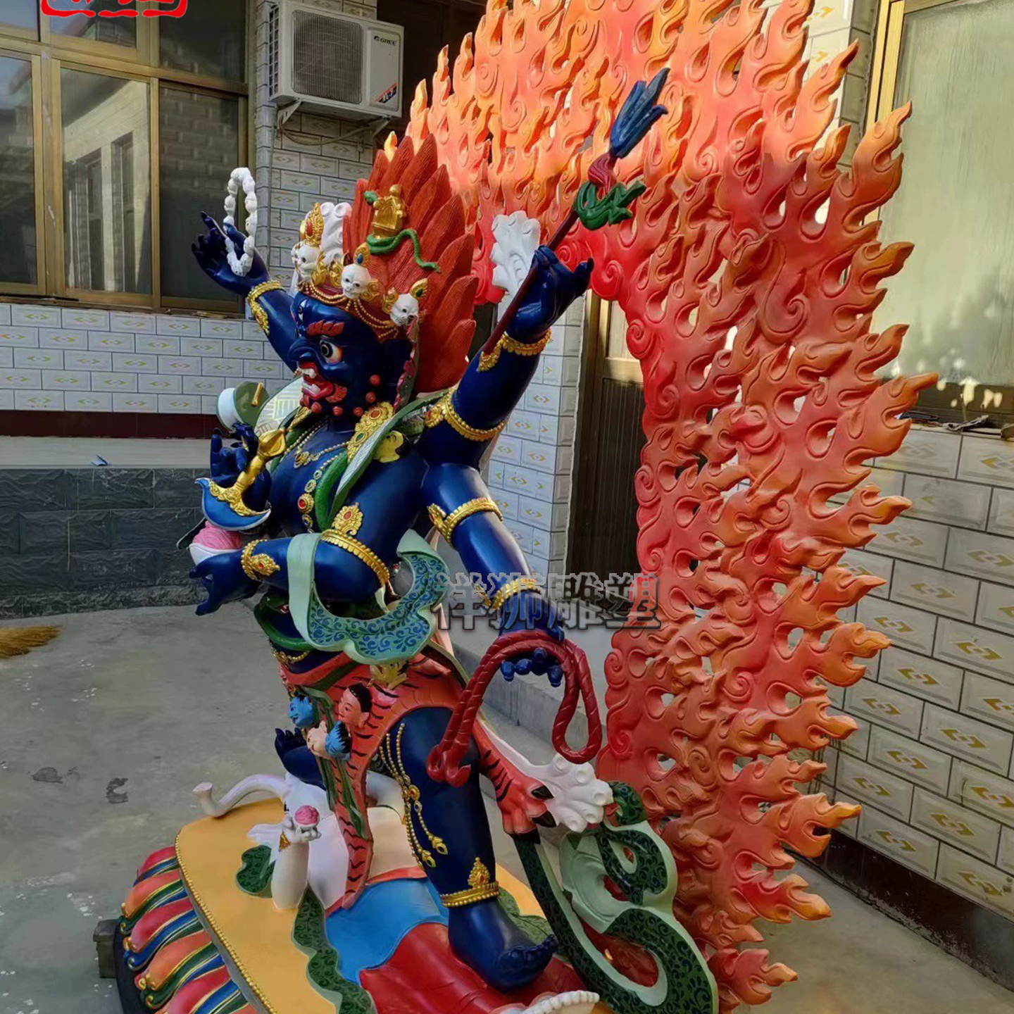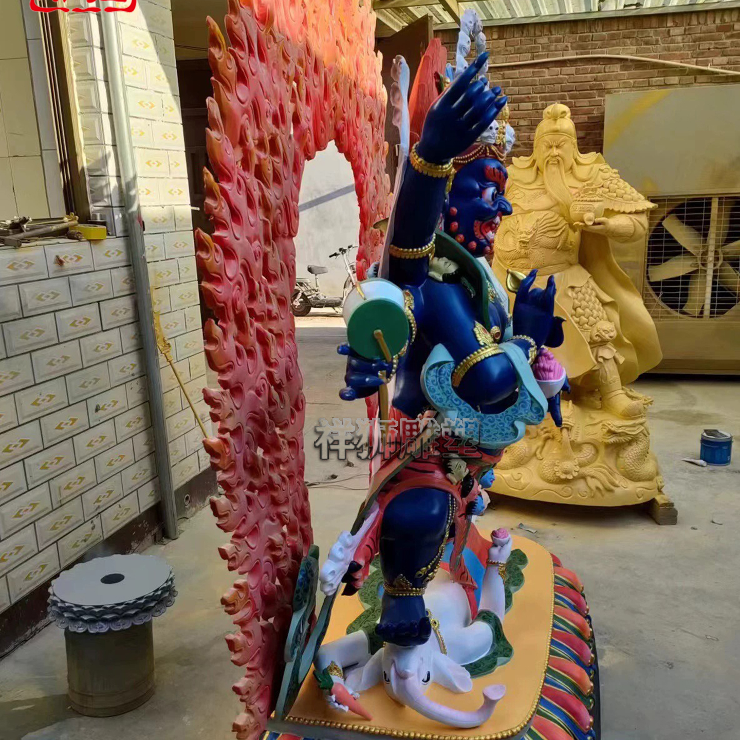 祥狮雕塑彩绘铜雕六臂玛哈嘎拉佛像铸造大型2米2藏传密宗摆件定制