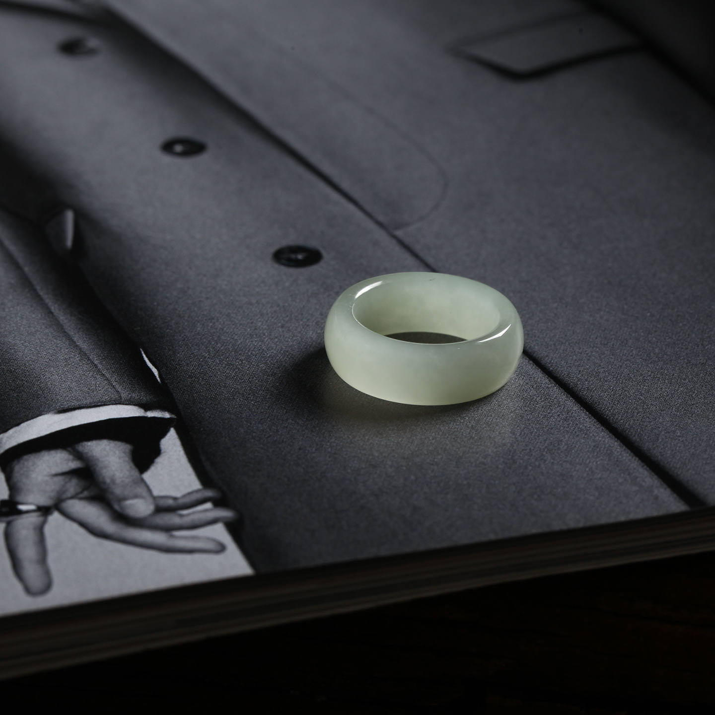 14号戒指 和田玉青白宽条圆弧素圈指环 1827